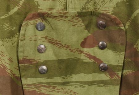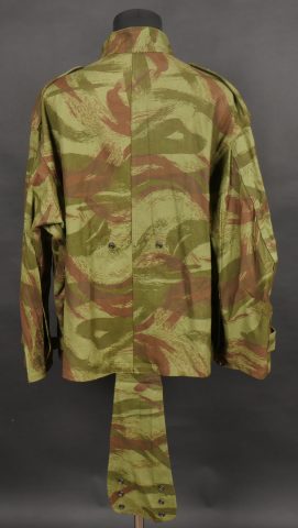 Veste TAP 4753. Veste confectionnée en coton camouflé et se fermant par huit boutons ainsi qu’une fermeture éclaire Ailee. Marquage fabricant au col Chaumont Paris, taille 29. Queue de... en savoir plus