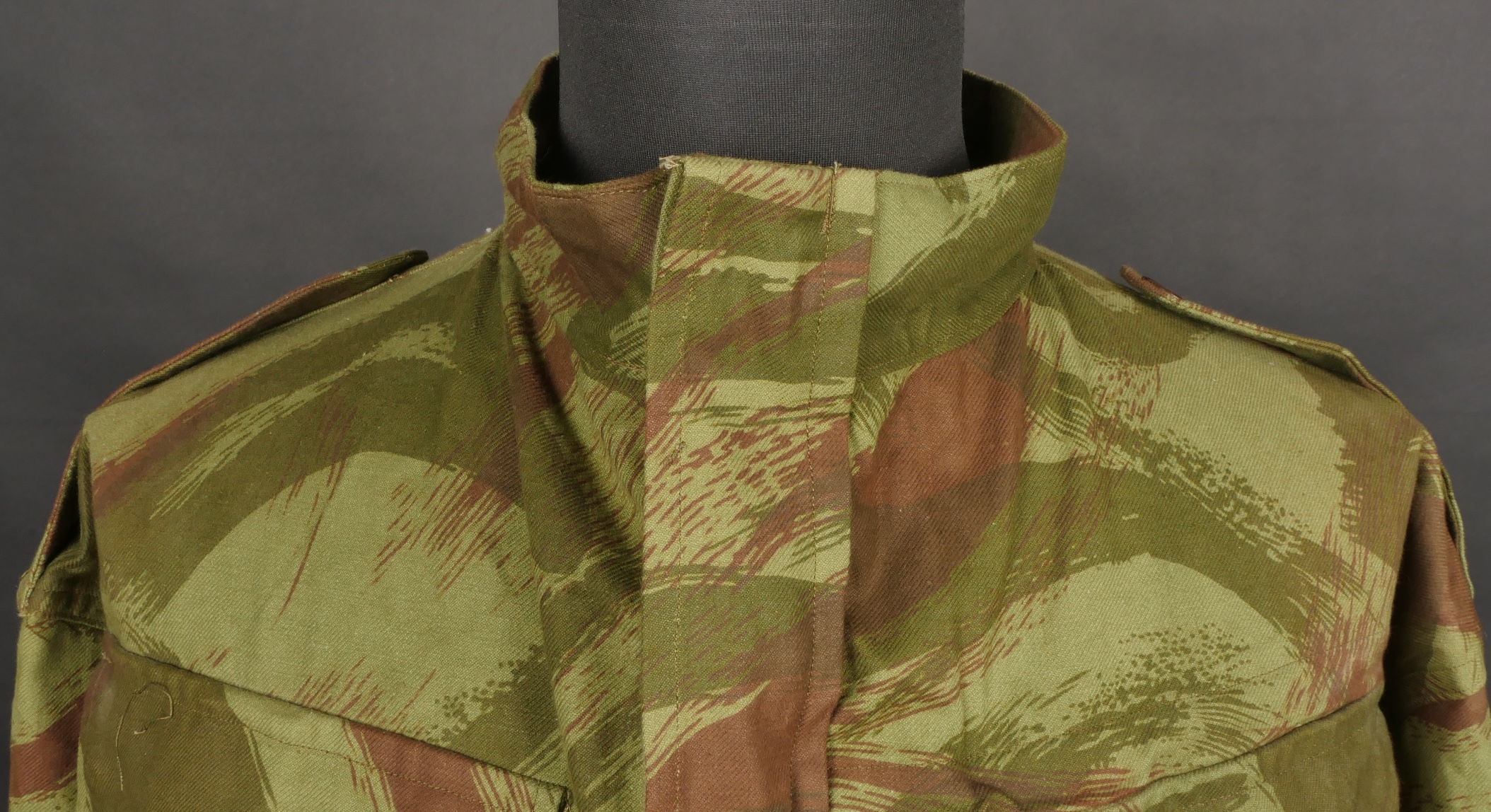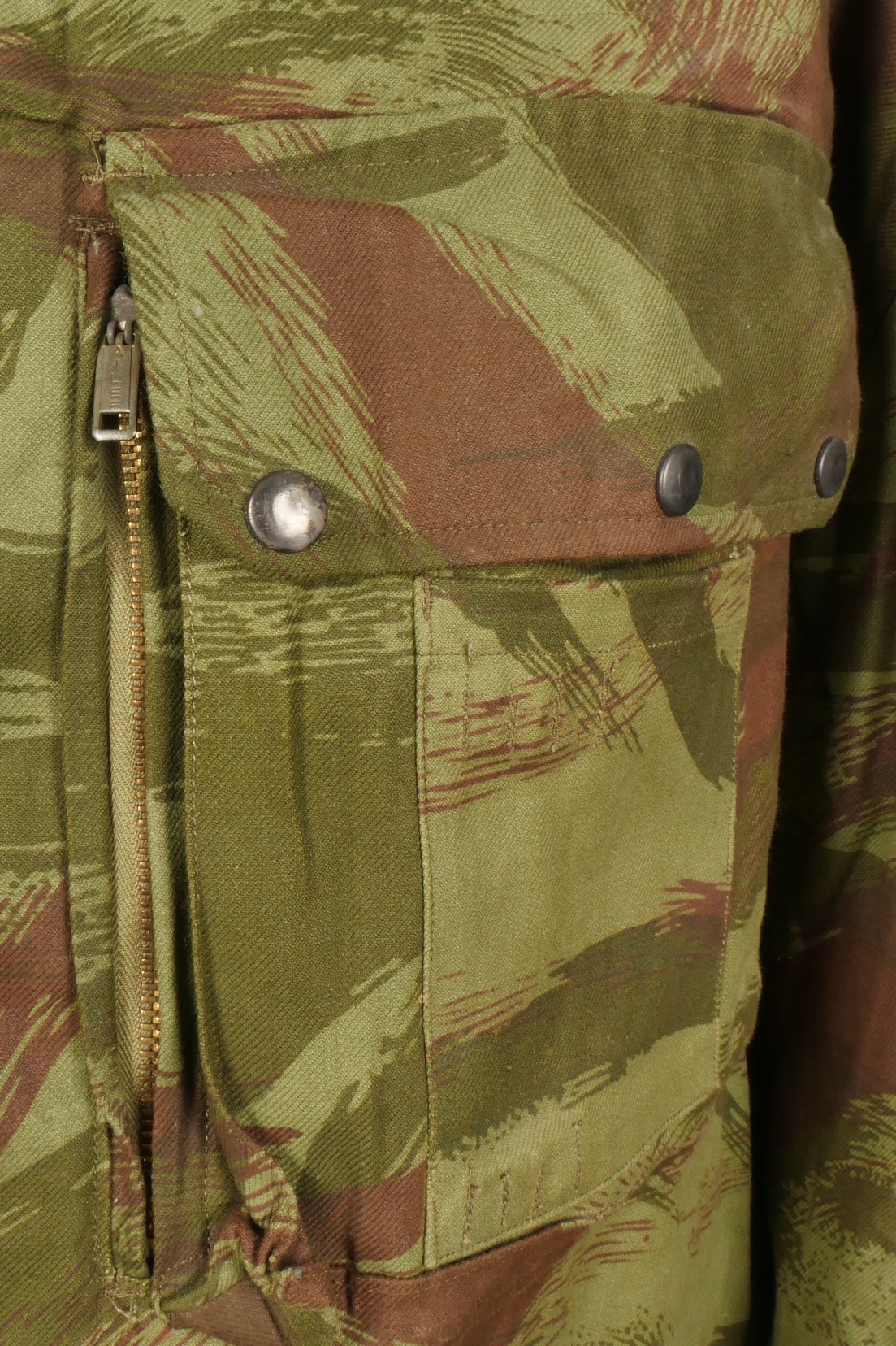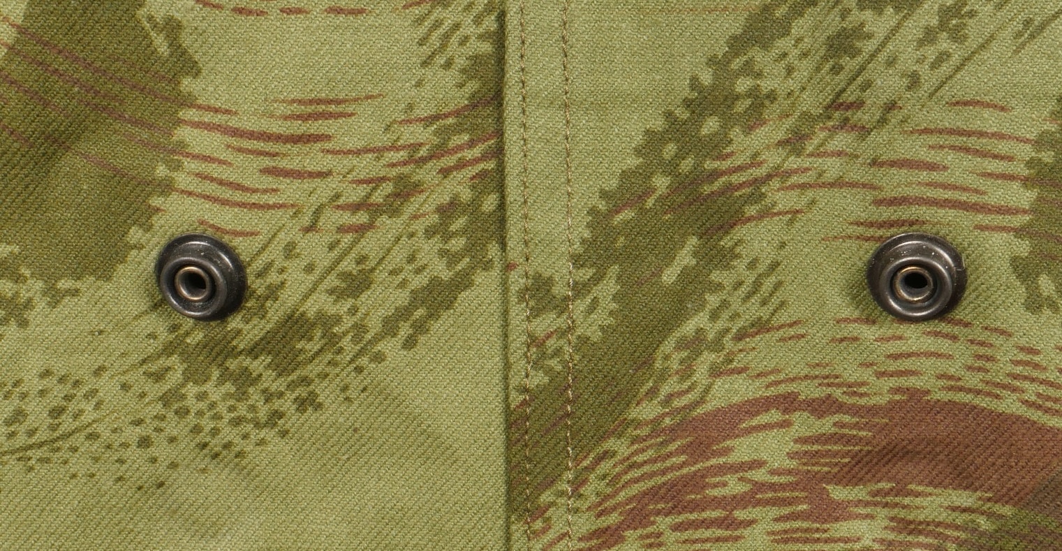 Veste TAP 4753. Veste confectionnée en coton camouflé et se fermant par huit boutons ainsi qu’une fermeture éclaire Ailee. Marquage fabricant au col Chaumont Paris, taille 29. Queue de... en savoir plus