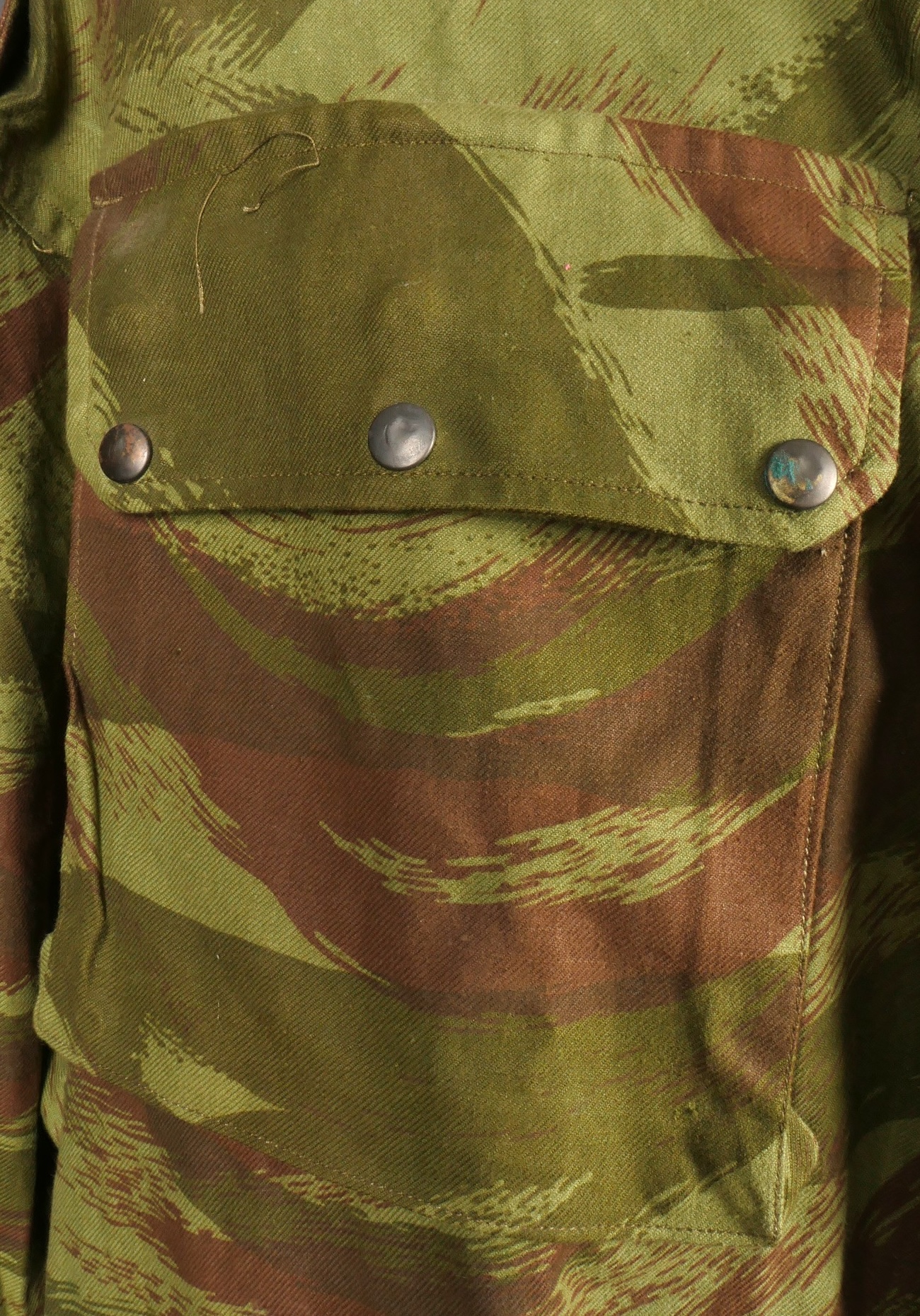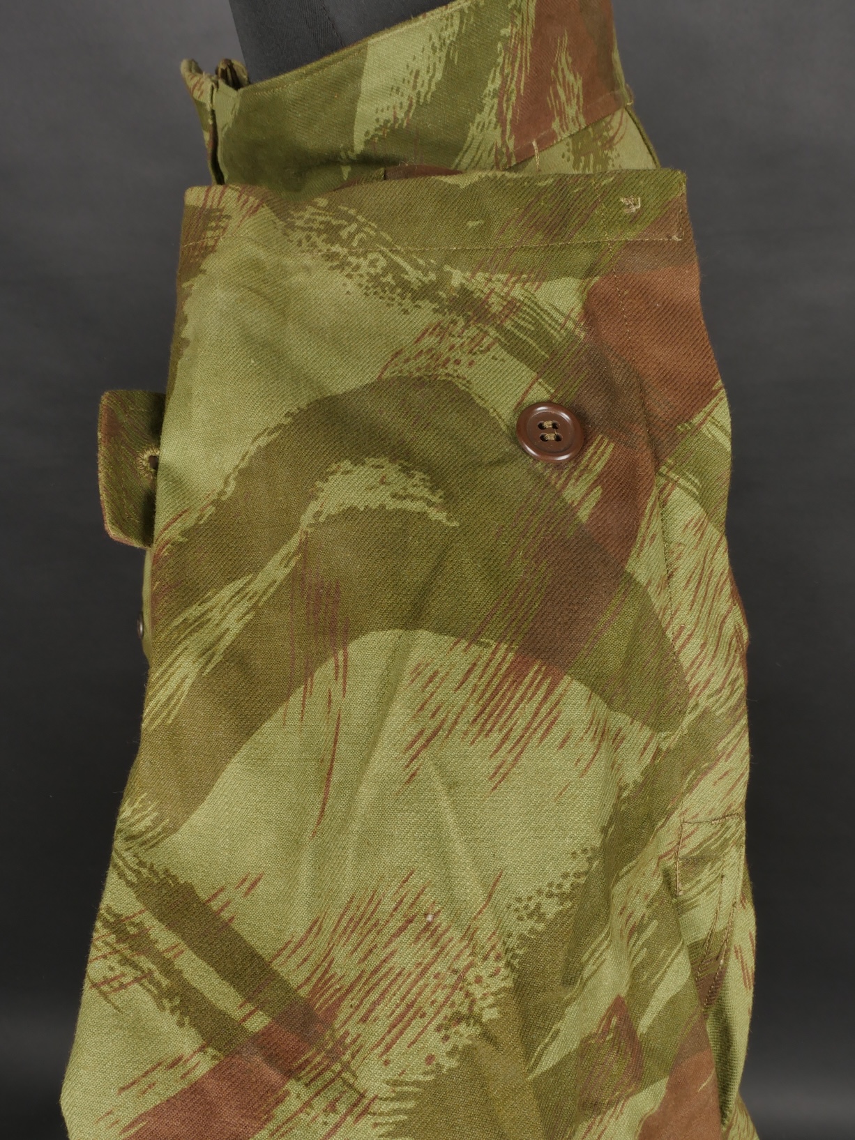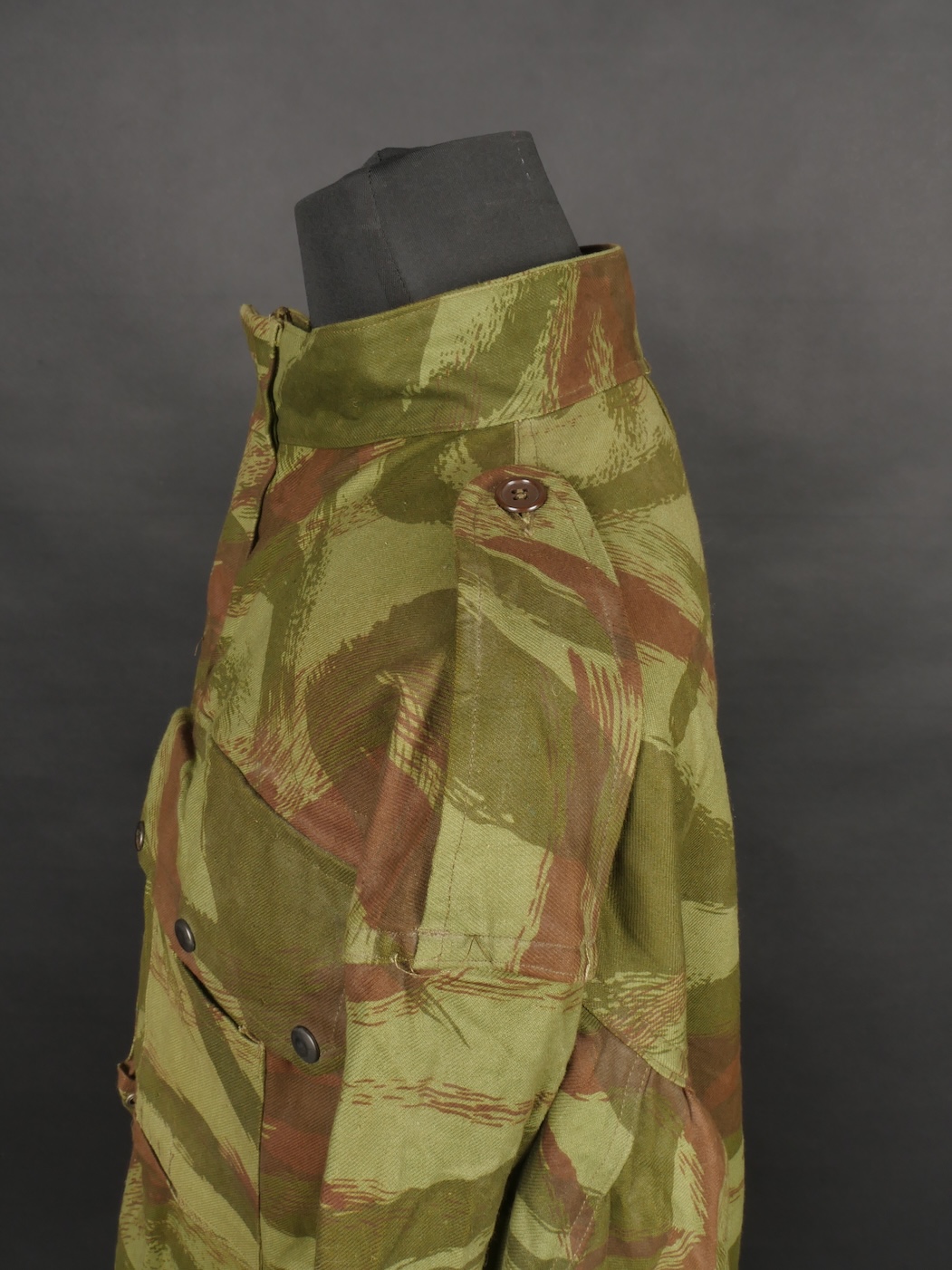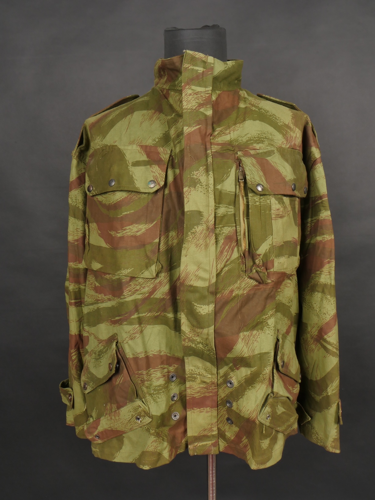 Veste TAP 4753. Veste confectionnée en coton camouflé et se fermant par huit boutons ainsi qu’une fermeture éclaire Ailee. Marquage fabricant au col Chaumont Paris, taille 29. Queue de... en savoir plus