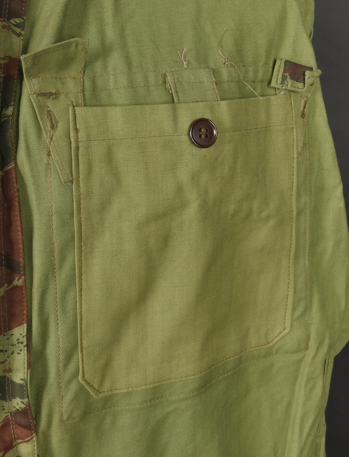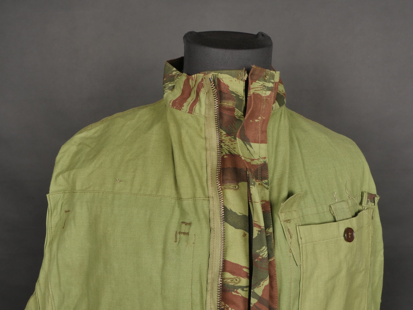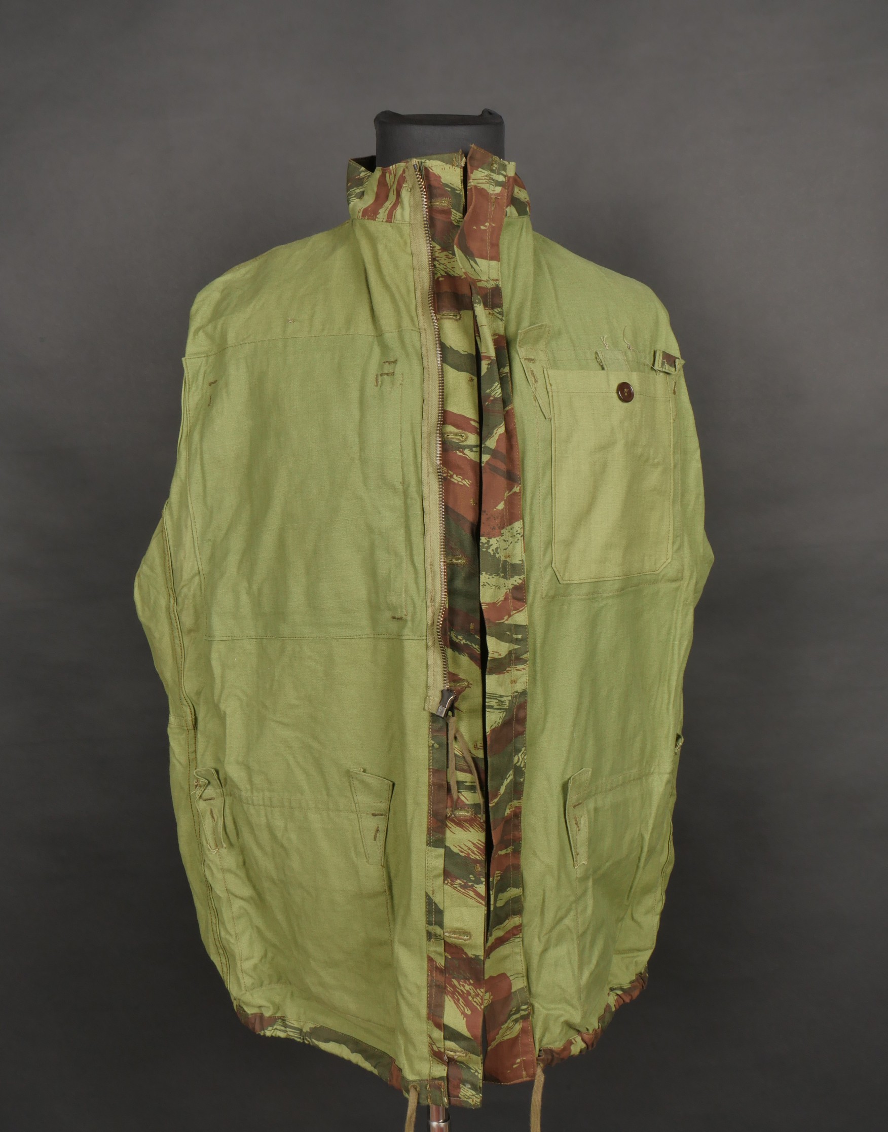 Veste TAP 4756 camouflée. Veste confectionnée en tissu camouflé 56, pressions en peinture d’origine, fermeture éclaire de marque Spidex, lacet de serrage présent. Tampon de fabricant... en savoir plus