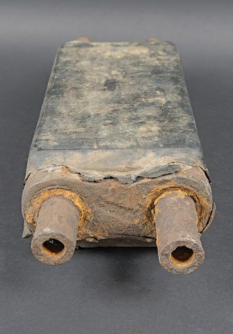 Patin de char Shermann. Modèle en caoutchouc et métal. Environ 8kg. Le caoutchouc est fortement abîmé. Le métal est oxydé. A noter une certaine usure et patine de la pièce. Etat II+.... en savoir plus