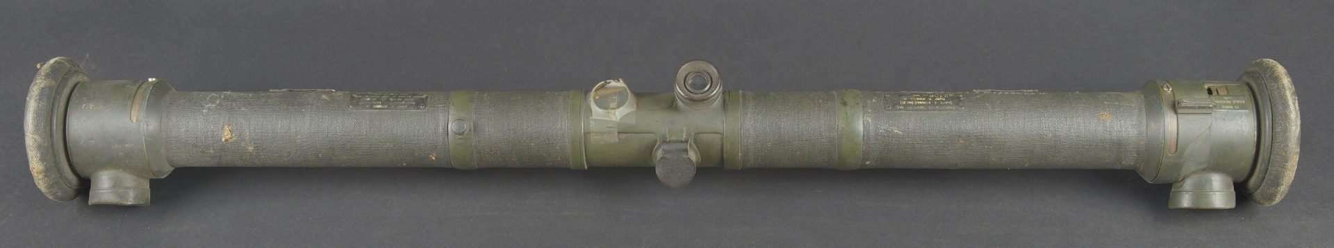Détails de la vente >Télémètre anglais Barr and Stoud 1915. Peint en vert, avec ses plaques signalétiques, bien daté 1915. Un œilleton manquant, quelques coups, optique non clair. Usure d’usage. British... en savoir plus