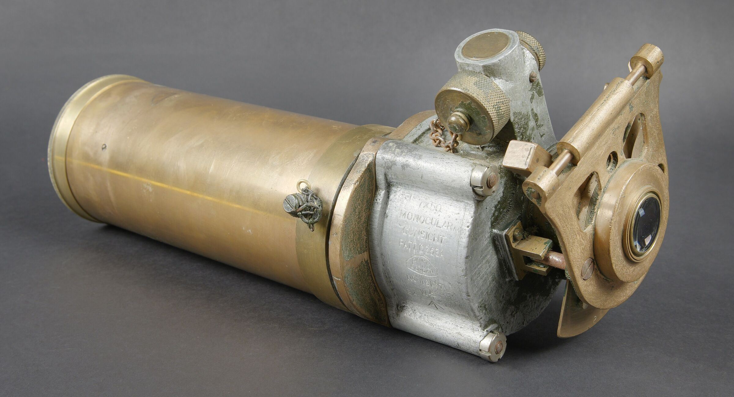 7 x 50 monocular gunsight britannique. G353AH 7 X 50 Naval Turret Gunsight. Modèle pour la Royal Navy britannique. Visée en laiton et en métal. Marquages 7 x 50 Monocular Gunsight Patt G 353A... en savoir plus