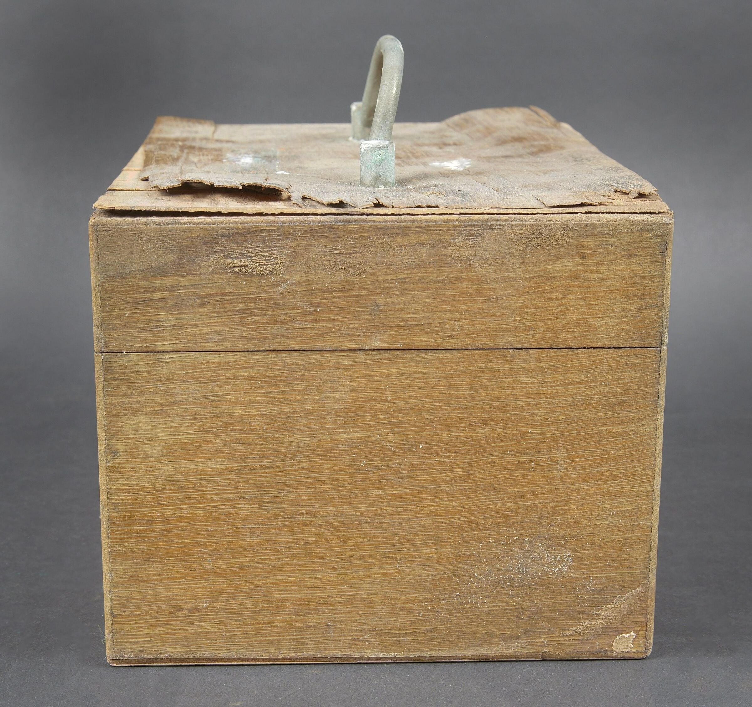 Détails de la vente >Anémomètre de la Marine Nationale française. Boite en bois. Le couvercle est fortement usé, et décollé par l’humidité. Poignée de transport en métal. Le crochet de fermeture est... en savoir plus
