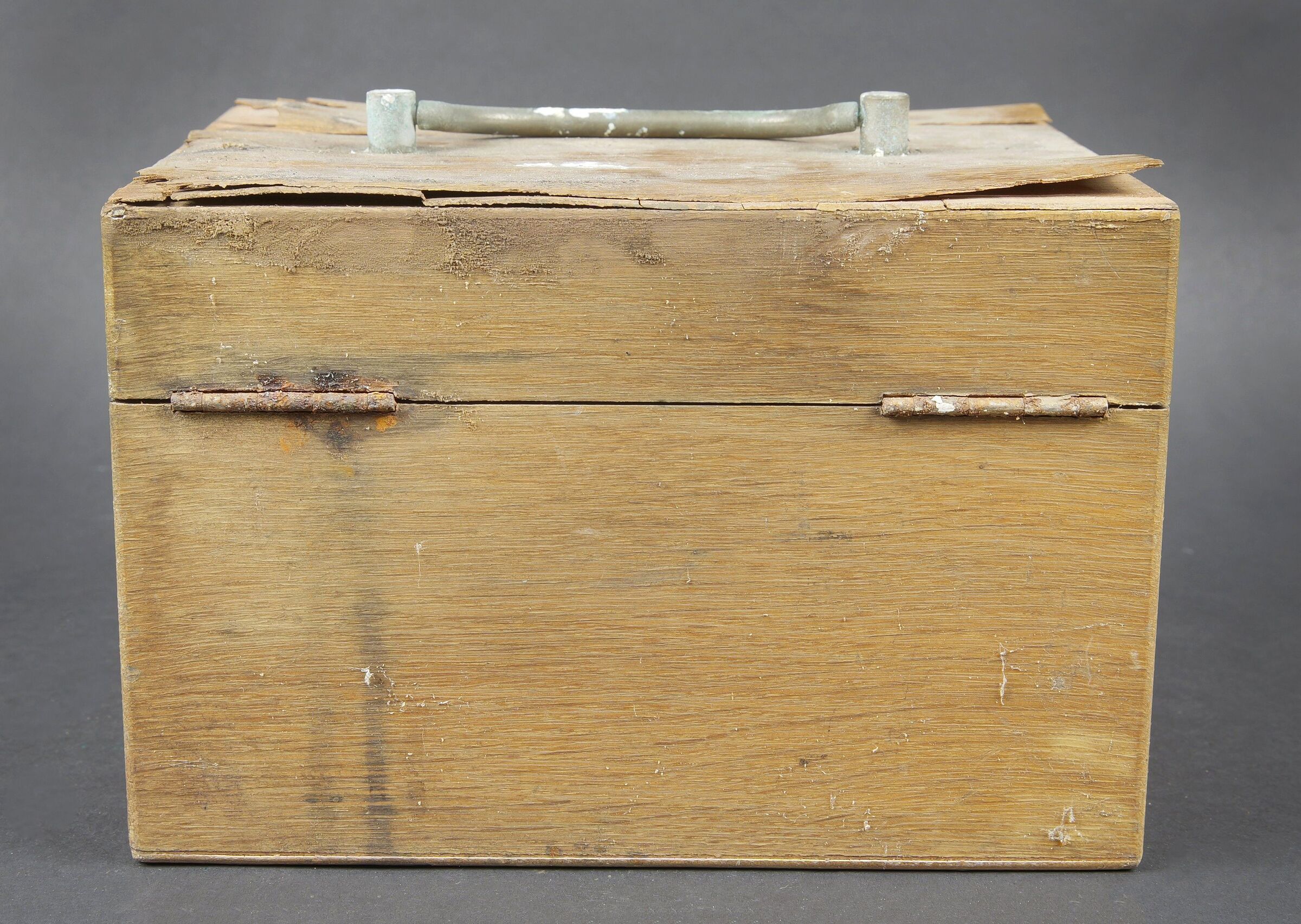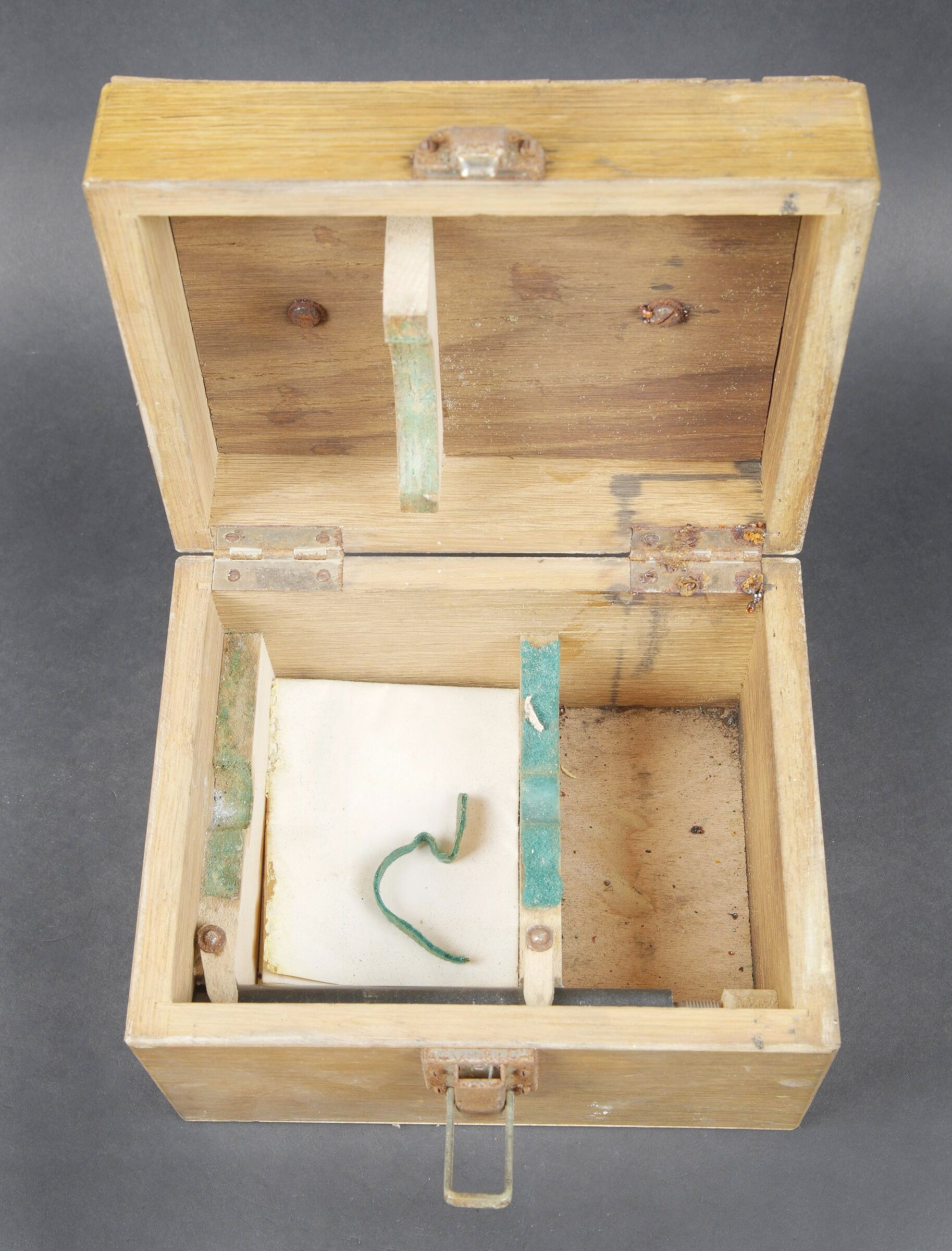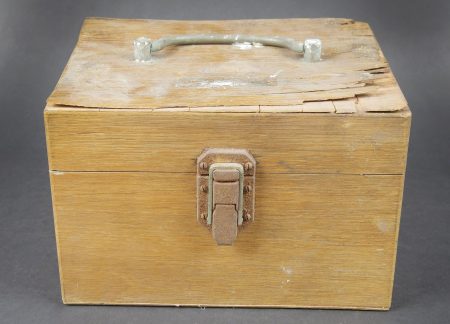 Anémomètre de la Marine Nationale française. Boite en bois. Le couvercle est fortement usé, et décollé par l’humidité. Poignée de transport en métal. Le crochet de fermeture est... en savoir plus