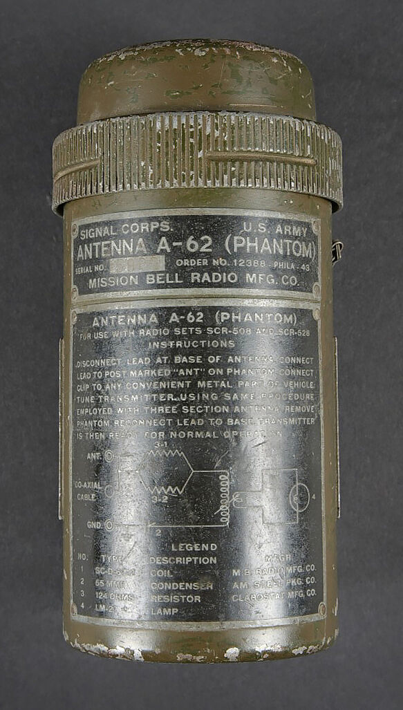Détails de la vente >Antenne A-62 Phantom. Boitier en métal. Peinture kaki à 70%. Plaquette marquée Signal Corps US ARMY Antenna A-2 Phantom. Datée 1943. Toutes les pièces mobiles sont fonctionnelles. Couvercle... en savoir plus
