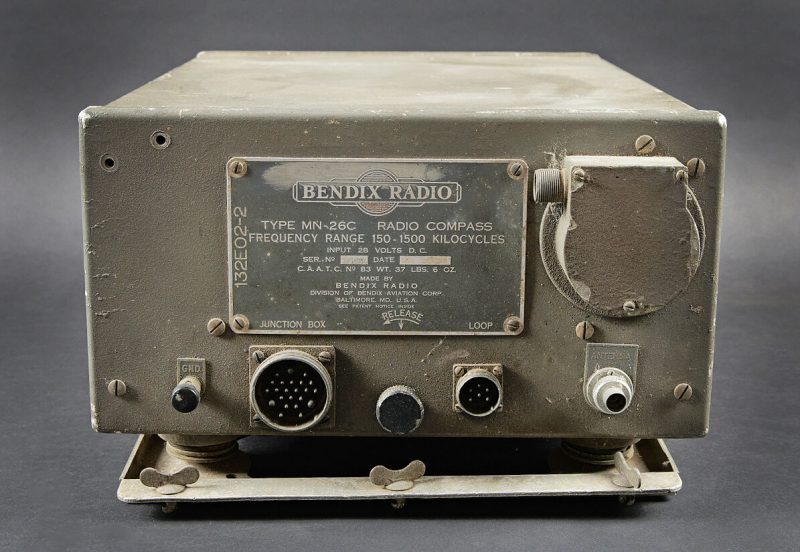 Bendix Radio type MN-26C. e MN26 est un récepteur de superhetrodyne de type recherche de direction d’avion. Caisse en métal avec son support de fixation à la carlingue. Toutes les pièces mobiles sont fonctionnelles. Plaquette marquée Bendix Radio Type MN-26C Radio Compass Frequency Range 150-1500 Kilocycles. Fabrication Bendix Radio Baltimore. La date est illisible. A noter une certaine usure et patine de la pièce. Etat II+. Aircraft radio compass receiver Bendix MN-26C Metal case with aircraft mounting tray. All moving parts functional. Plate marked Bendix Radio Type MN-26C Radio Compass Frequency Range 150–1500 kilocycles. Manufactured by Bendix Radio, Baltimore. Date illegible. Note some wear and patina to the piece. Condition II+.
