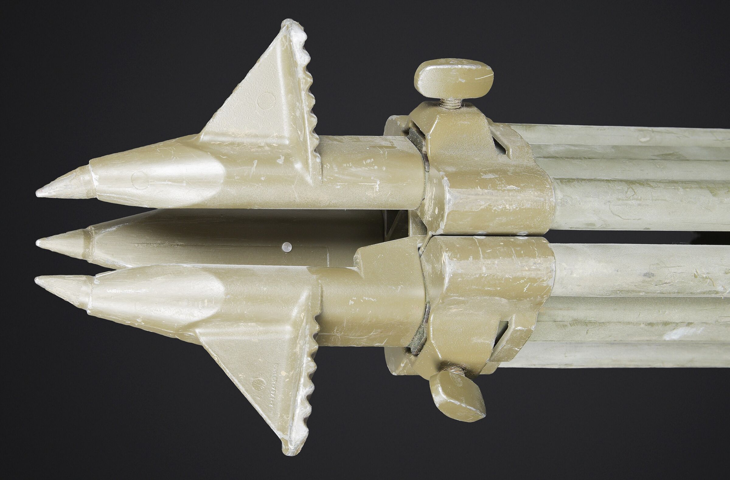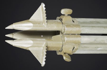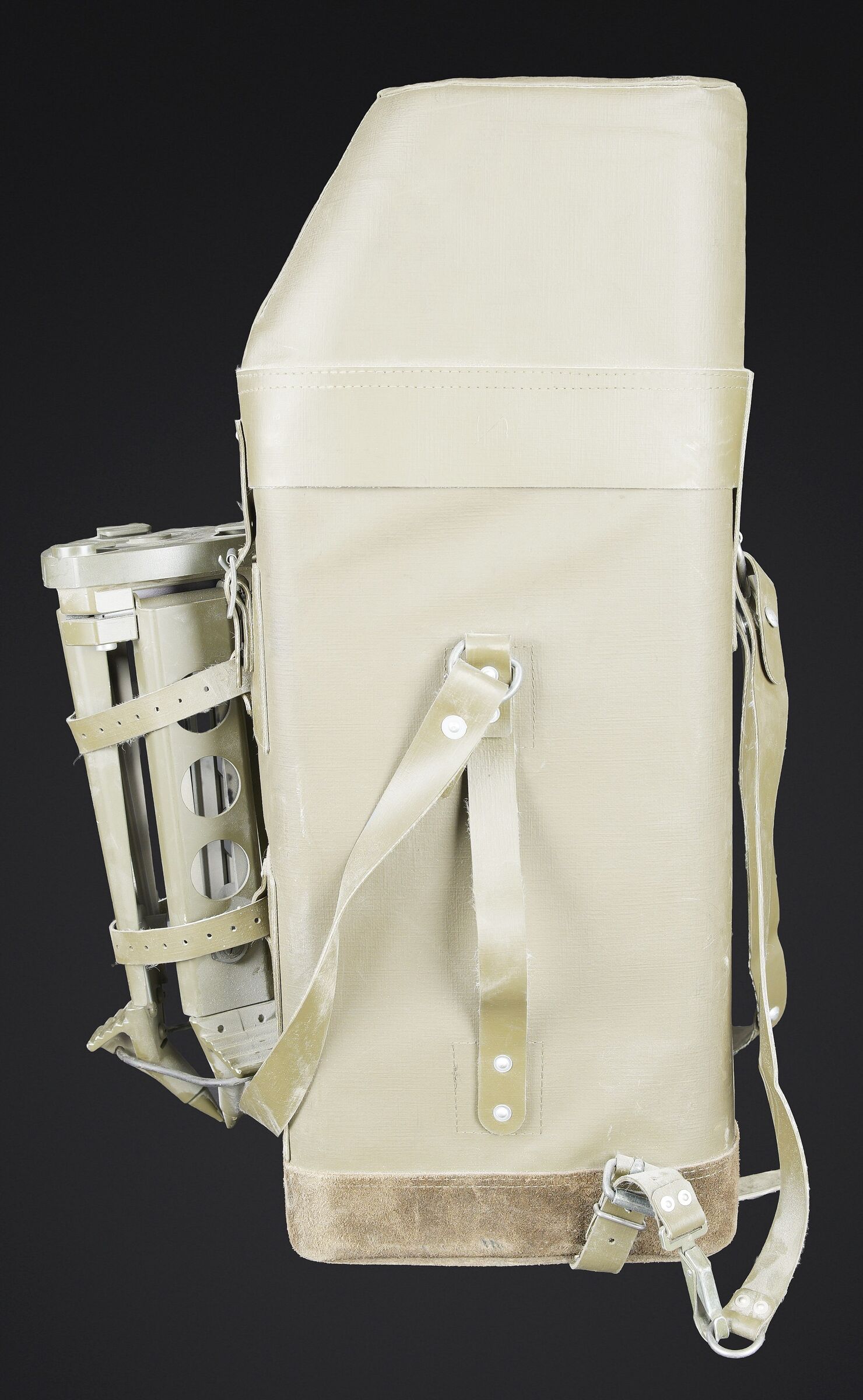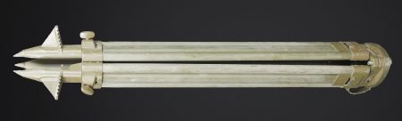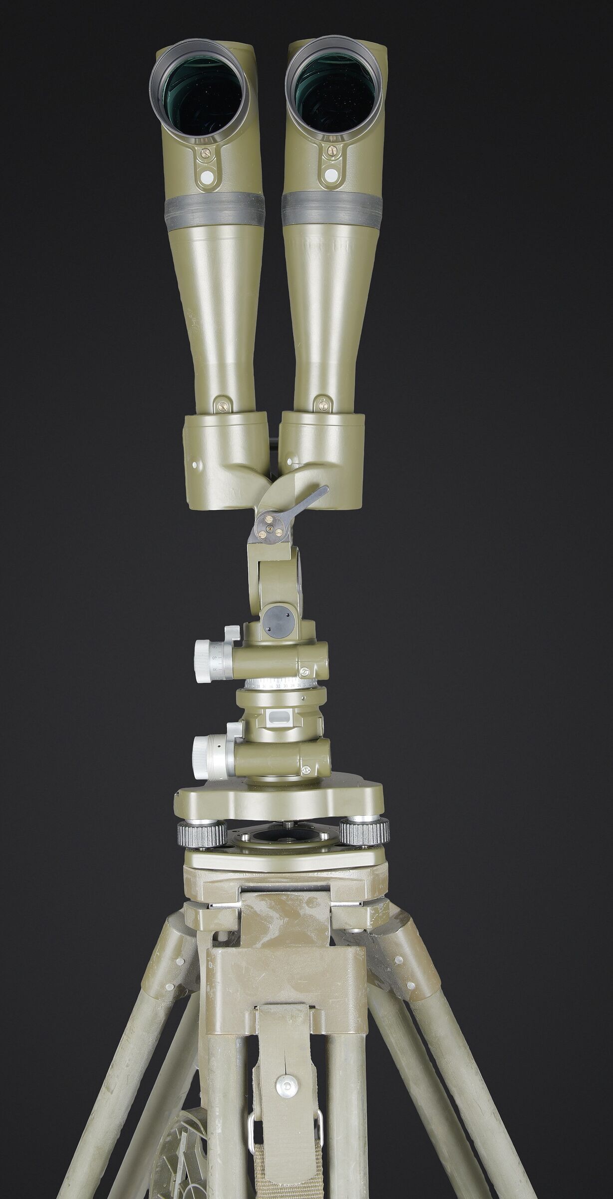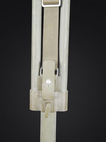 Binoculaire suisse Kern. Housse en toile caoutchouté. Toutes les sangle sont présentes. Couvercle portant le marquage Peri Gonio 85 Gewicht 11KG. Certains accessoires sont manquants. Intérieur doublé en d’une épaisse mousse noir. Certains accessoires sont manquants. Binoculaire complet. Toutes les pièces mobiles sont fonctionnelles. Marquages Kern Suiss 1985/86 Nr 3850 10 x 50 mm. Petit trépied métallique présent et fixé sur la sacoche principale. Grand trépied en aluminium. La sangle de transport est présente. Trois pointes d’ancrage au sol. Marquages Wild. A noter une certaine usure et patine de la pièce. Etat II+. Swiss Kern binoculars Rubberised canvas case with all straps present. Lid marked Peri Gonio 85 Gewicht 11 kg. Interior lined with thick black foam. Some accessories missing. Complete binoculars with all moving parts functional. Marked Kern Swiss 1985/86 Nr 3850 10 × 50. Small metal tripod present and attached to the main carrying case. Large aluminium tripod with carrying strap and three ground anchoring spikes. Marked Wild. Note some wear and patina to the piece. Condition II+.