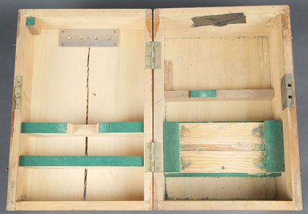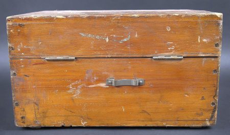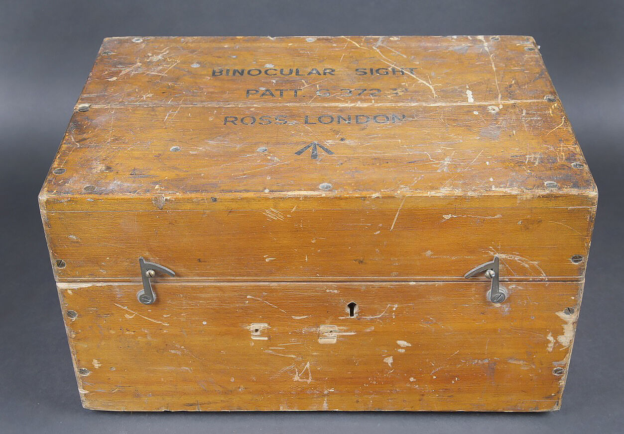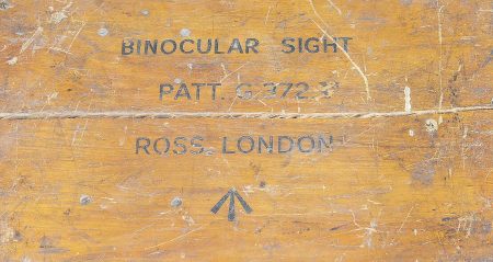 Détails de la vente >Binocular Gunsight X3 1/2 britannique. Très belle boite en bois, présentant quelques marques d’usures. Le côté du couvercle porte le numéro 121096. Les crochets de fermeture sont... en savoir plus