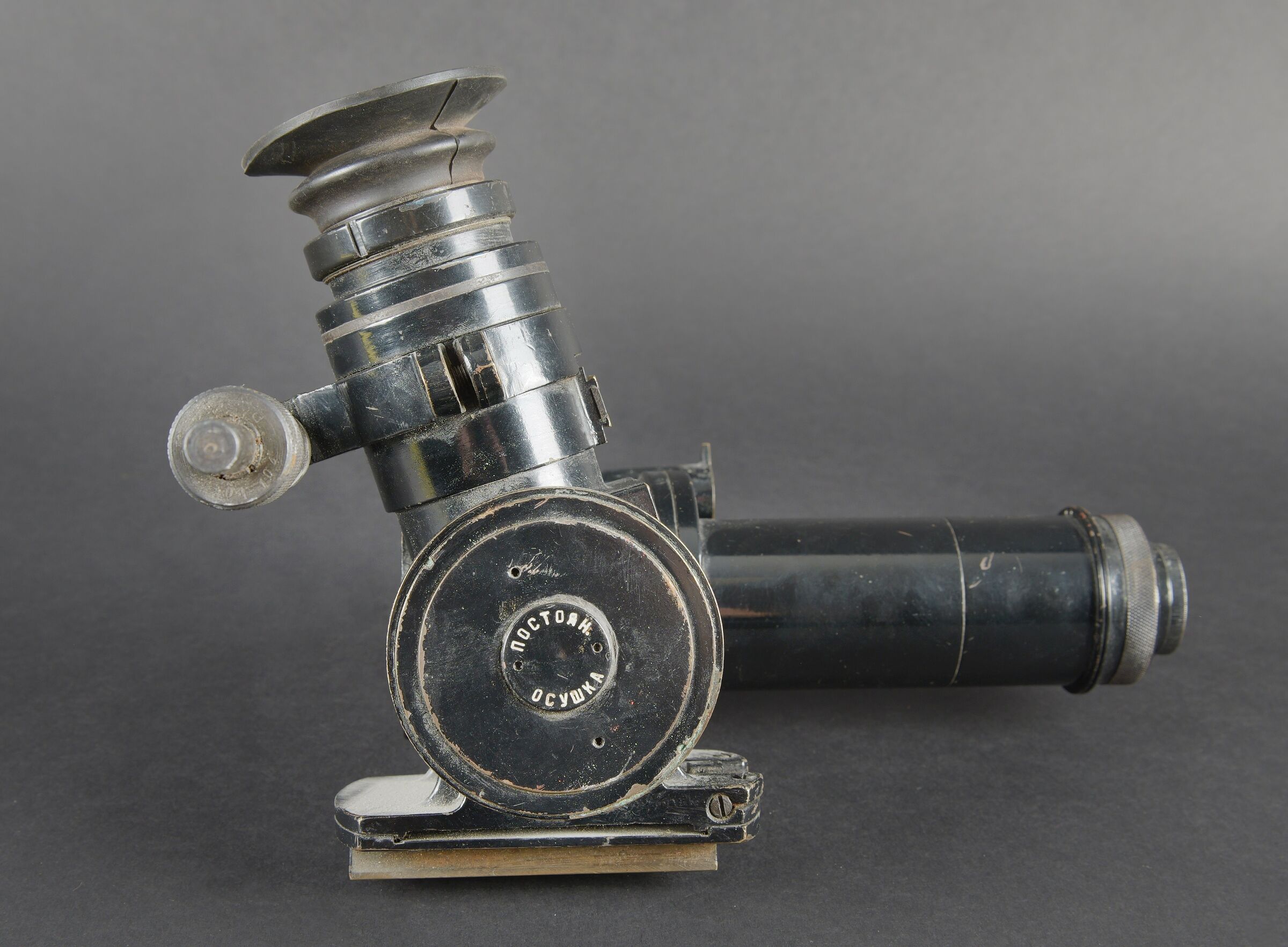 Binocular prismatic. Marquages en lettrages cyrilliques. Numéro N0659, daté 1970. En métal, peinture noire à 80%. Bonnette en caoutchouc complète. Toutes les pièces mobiles sont... en savoir plus