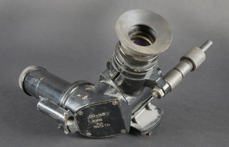 Binocular prismatic. Marquages en lettrages cyrilliques. Numéro N0659, daté 1970. En métal, peinture noire à 80%. Bonnette en caoutchouc complète. Toutes les pièces mobiles sont fonctionnelles. Optique graduée en parfait état. A note rune certaine usure et patine de la pièce. Etat II+. Prismatic binoculars Cyrillic markings. Serial number N0659 dated 1970. Metal construction with black paint 80% preserved. Complete rubber eyepiece. All moving parts functional. Graduated optics in perfect condition. Note some wear and patina to the piece. Condition II+.