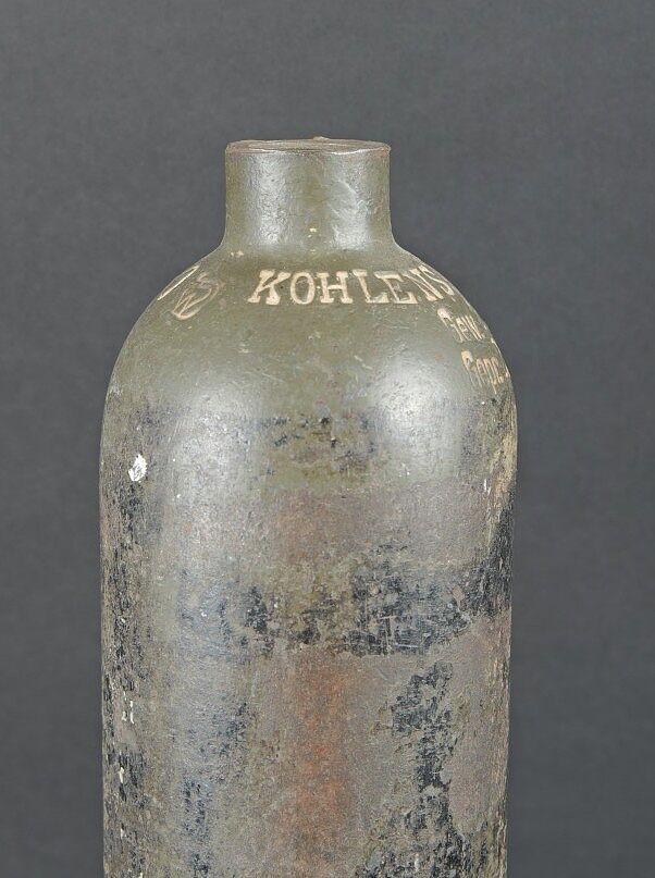 Détails de la vente >Bouteilles d’oxygènes LW. Comprenant une bouteille d’un petit modèle en métal. Peinture à 40%. Partie supérieure absente. Marquages Kohlensäure N 25 Gev 1,9 kg füll 0,5 19 6 31.... en savoir plus