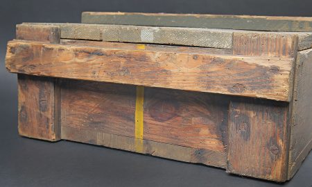 Caisse 3 obus 7,62 cm Pak.36. Caisse en bois pour 3 obus de 7,62 cm Pak.36 (r). Canon antichar de 7,62 cm 36 russe monté également sur Marder 2. Fermeture par deux loquets. Deux poignées en... en savoir plus