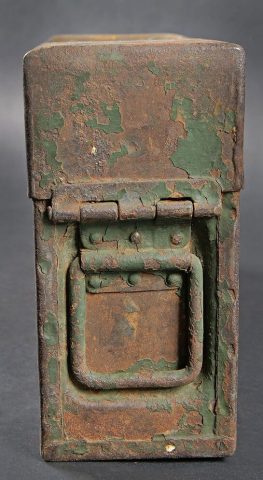 Détails de la vente >Caisse MG 34/42 camouflé. En métal. Le crochet de fermeture est présent. La poignée de transport est présente. Peinture camouflé trois tons à. 40%. Couvercle portant le numéro 9333, peint... en savoir plus