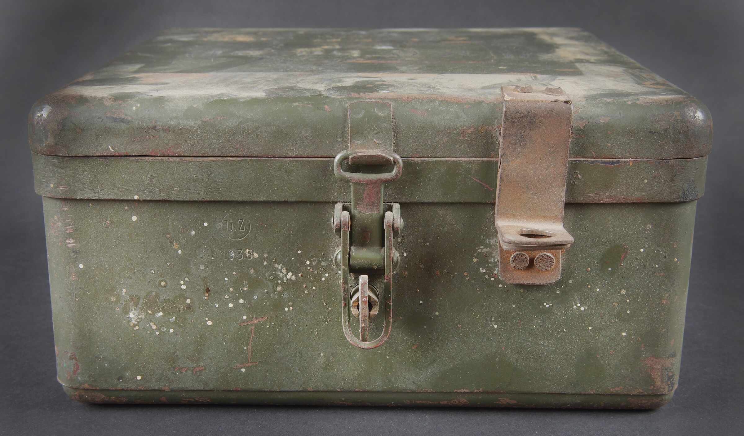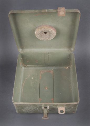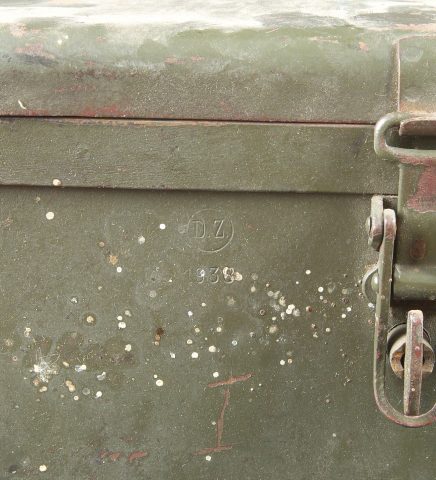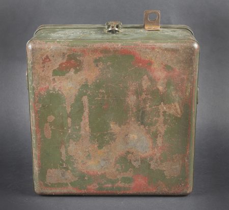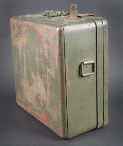 Caisse radio allemande. En métal. Le crochet de fermeture est fonctionnel. Peinture Feldgrau à 70%. Marquages VI K FBG BF. Vide. A noter une certaine usure et patine de la pièce. Etat II+.... en savoir plus