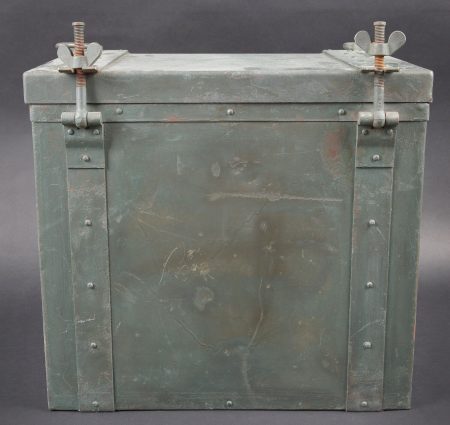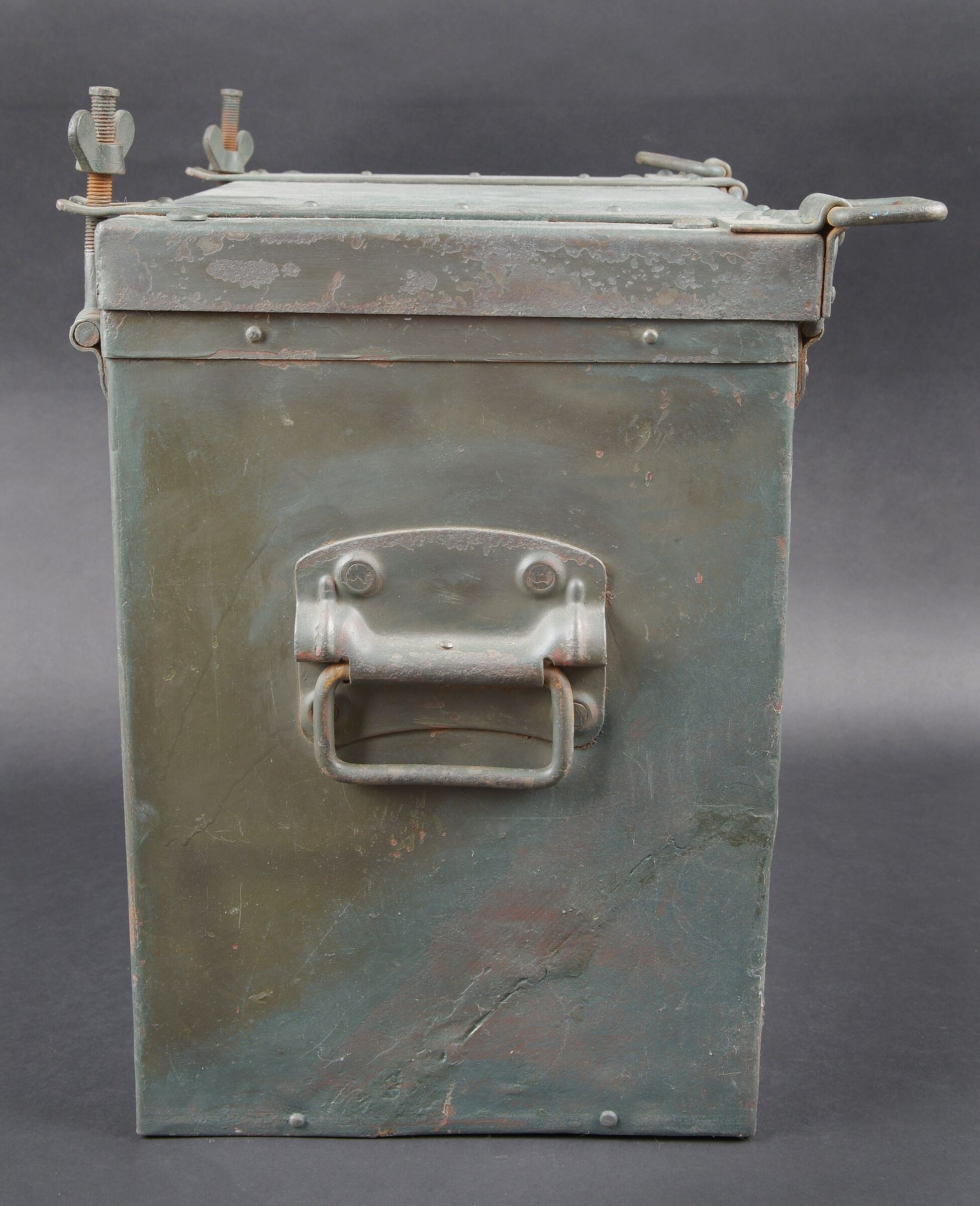 Détails de la vente >Caisson de cuisine roulante allemand. En épais métal, les poignées de transport sont présentes. Les vis de fermeture sont fonctionnelles. Entièrement repeinte. Couvercle doublé d’un... en savoir plus
