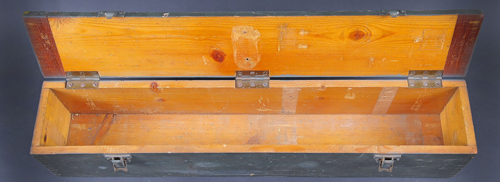 Camera Aircraft C45. Belle caisse en bois. Peinture grise à 80%. Les charnières arrières ont été remplacées. Les crochets de fermeture sont présents. Couvercle marqué Camera Aircraft C45... en savoir plus