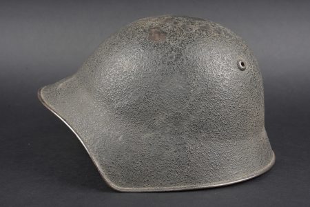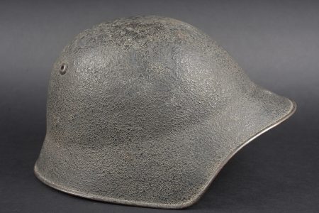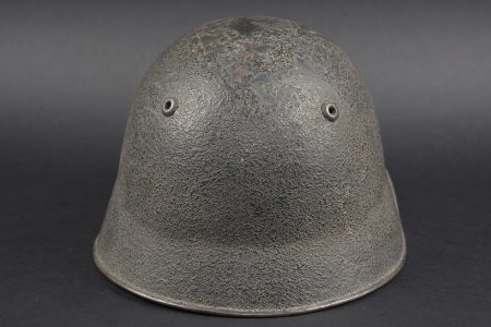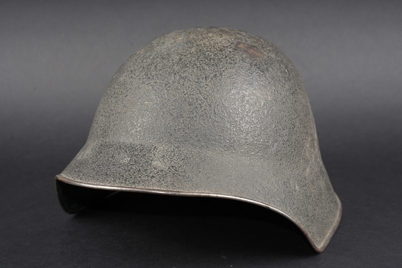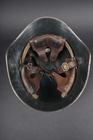 Suisse casque modèle 1918-43. Fabrication probable des années 50, avec sa coiffe à dents de loup à œillets, sa jugulaire et son disque d’identification nominatif. Swiss Model 1918-43... en savoir plus