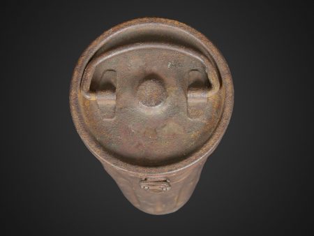 Détails de la vente >Containers à obus. Deux modèles différents de container en métal. Les couvercles sont présents. Les crochets de fermeture sont complets, ainsi que les poignées de transport. Les marquages... en savoir plus