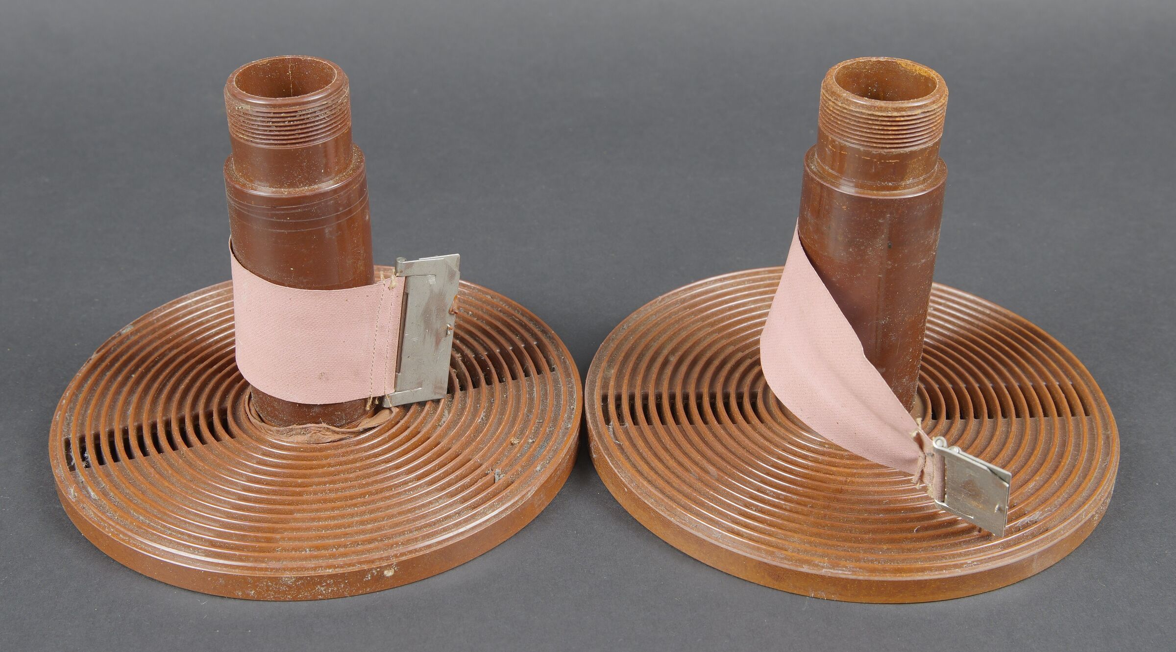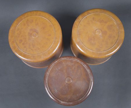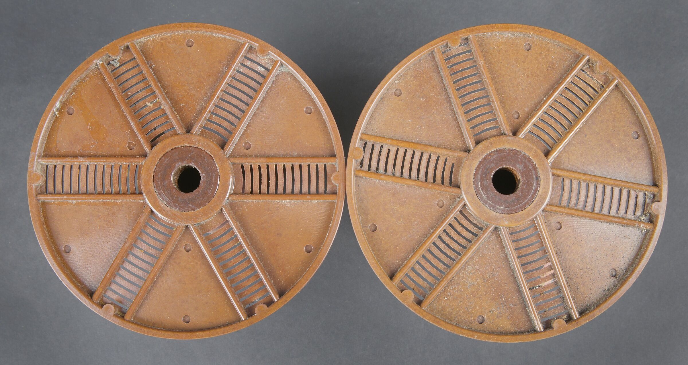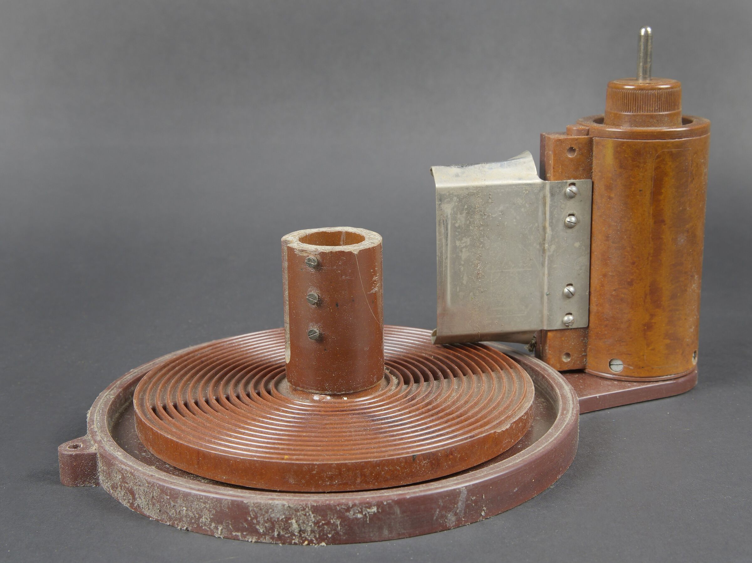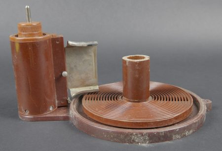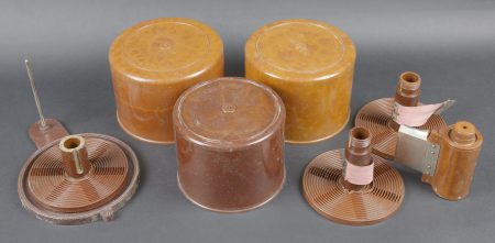 Filmentwicklungsgerät B 8 cm. Belle caisse en bois avec renfort métallique. Les poignées de transport sont présentes. Les crochets de fermeture sont fonctionnels. Belle peinture gris/bleu à 70%. Les racks interne sont présents et recouvert de feutrine noire. La majorité des accessoires en bakélite marron sont présents. Couvercle disposant du tampon BAL 653. La notice d’inventaire est présente. Certains accessoires sont manquants. La clé de fermeture est absente. Ces appareils ont été utilisés pour le traitement rapide de photos aériennes, par exemple à partir de séries telles que le 20cm. A noter une certaine usure et patine de la pièce. Etat II+. Filmentwicklungsgerät B for 8 cm film. Wooden case with metal reinforcements, carrying handles present, functional latches, grey-blue paint at 70%. Internal racks lined with black felt. Majority of brown bakelite accessories present. Lid stamped BAL 653. Inventory list present. Key missing. Used for rapid processing of aerial reconnaissance film. Showing normal wear and patina. Condition II+.