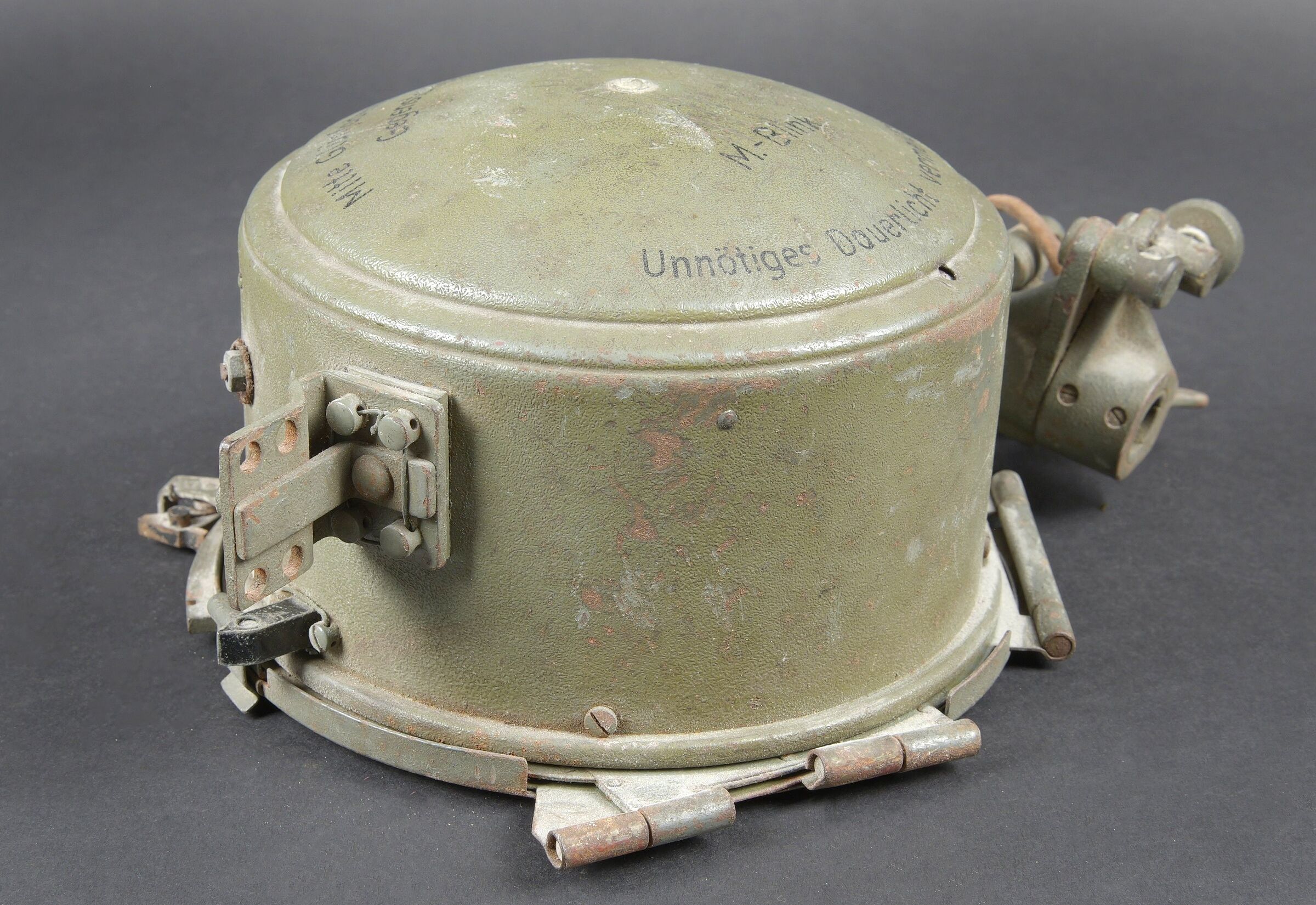 Détails de la vente >Lampe de signalisation WH. En métal. Peinture Feldgrau à 90%. Marquages au dos Mitt Glünfaden im Feldstrecher auf gegenstation richten M Blink Unnötiges Dauerlicht vermeiden. Plaquette... en savoir plus