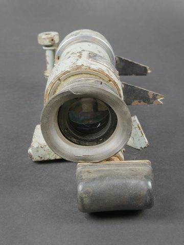 Lunette de canon M44 DNW. En métal. Peinture gris bateau pouvant correspondre à la marine de guerre des forces de l’axe, à 70%. Bonnette en caoutchouc complète, mais présentant des... en savoir plus