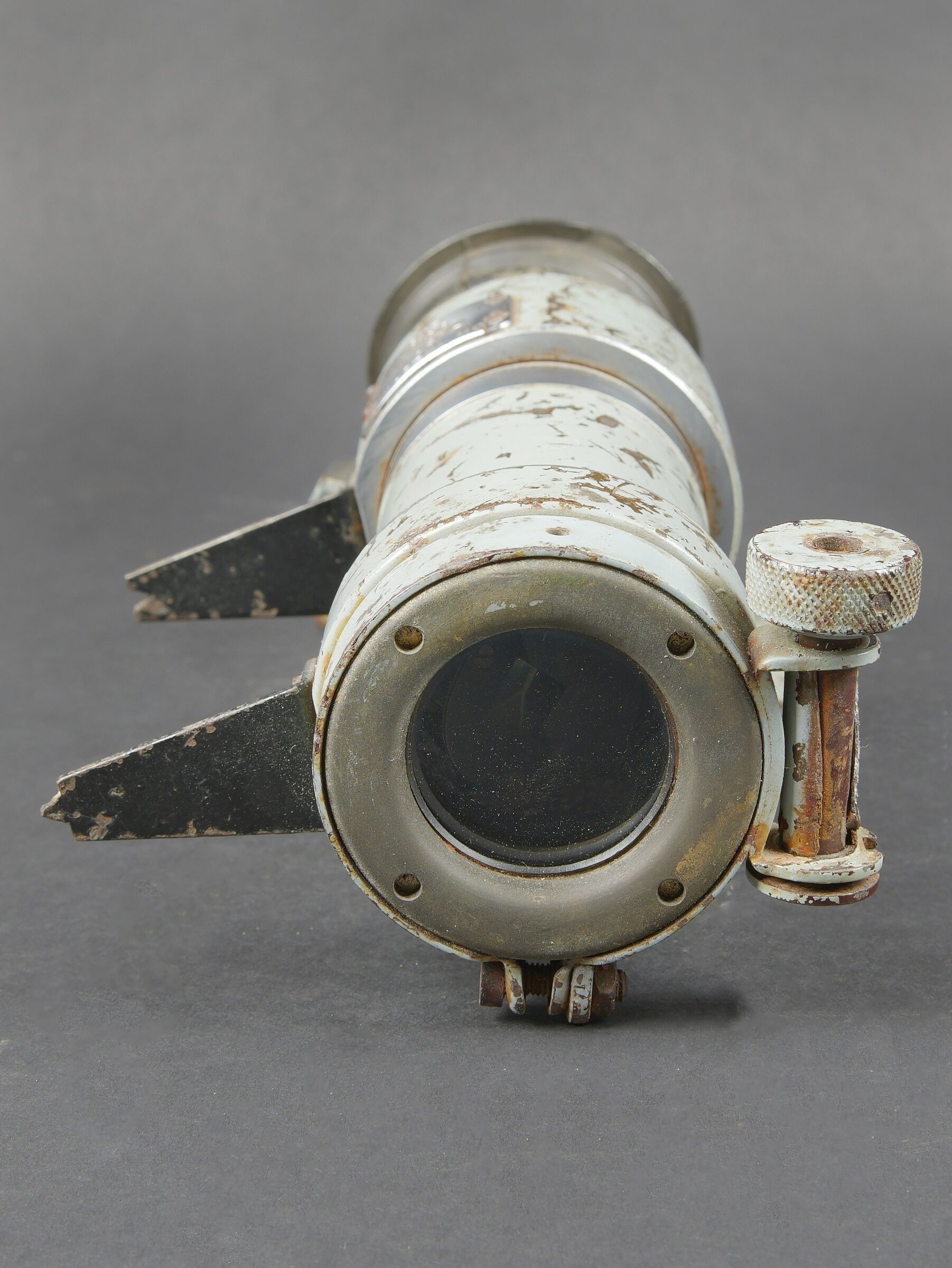 Détails de la vente >Lunette de canon M44 DNW. En métal. Peinture gris bateau pouvant correspondre à la marine de guerre des forces de l’axe, à 70%. Bonnette en caoutchouc complète, mais présentant des... en savoir plus