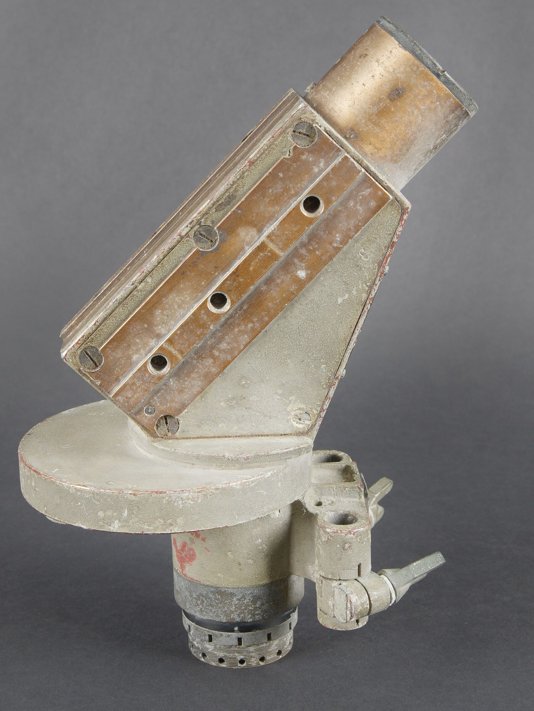 Lunette de tir de la marine de guerre des forces de l’axe. En métal. Peinture gris bateau présentant des traces d’oxydation. Quelques accessoires sont manquants. Toutes les pièces... en savoir plus
