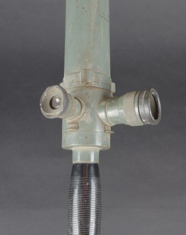 Monoculaire WH. En métal. Peinture Feldgrau à 70%. Pare soleil complet, maintenu par deux élastiques. Marquages Goerz Berlin Nr 41 DRGM. Poignée en bakélite complète. Les protèges oculaires... en savoir plus