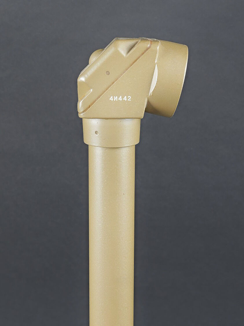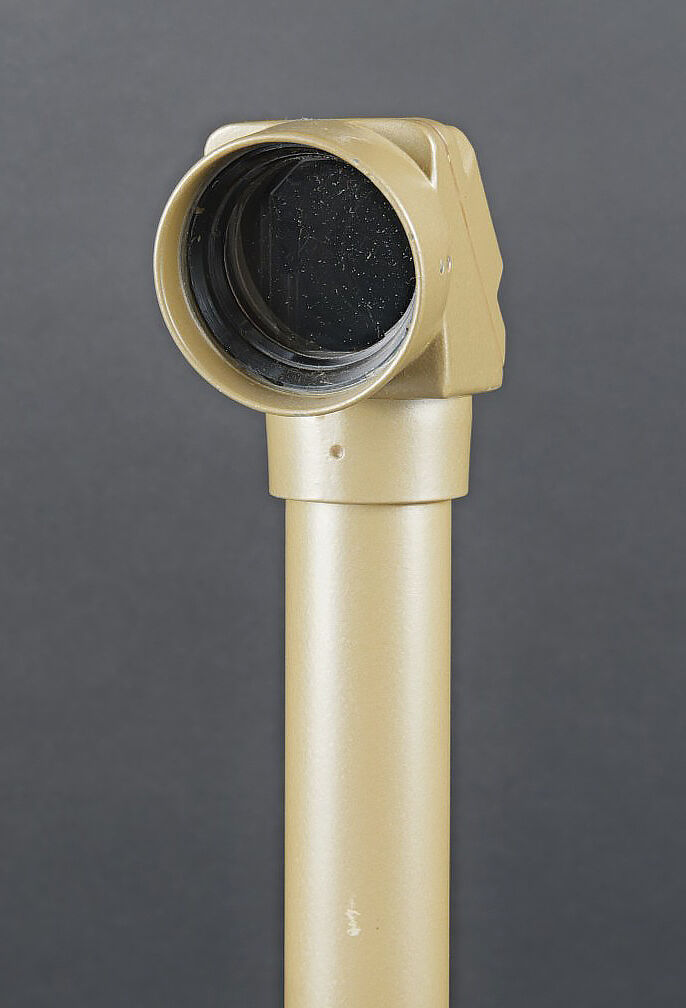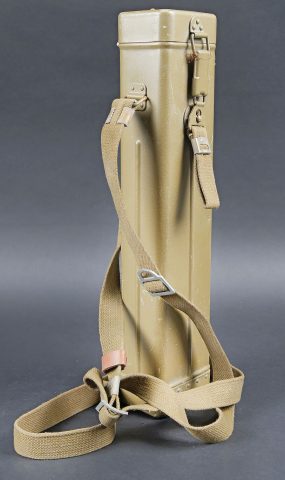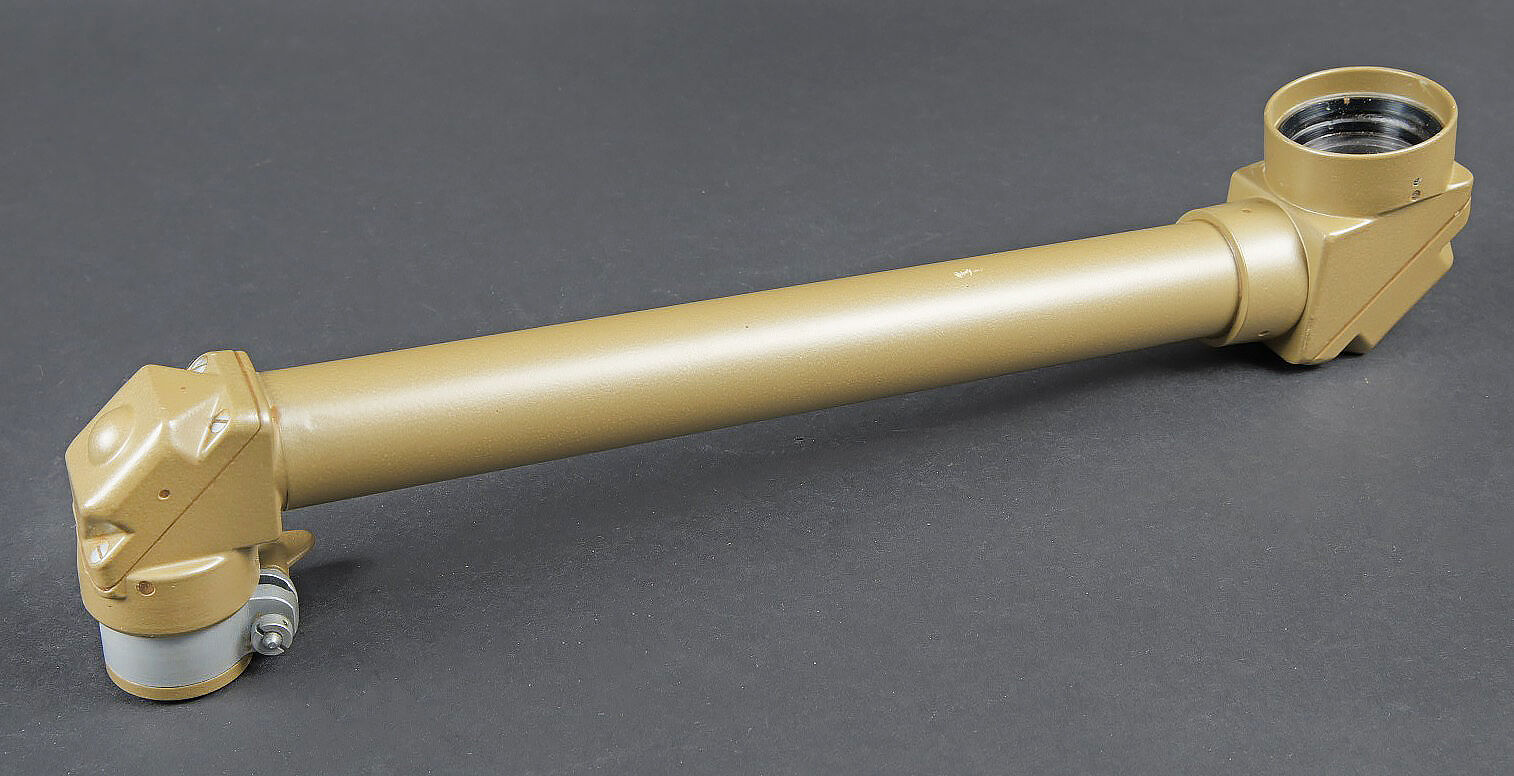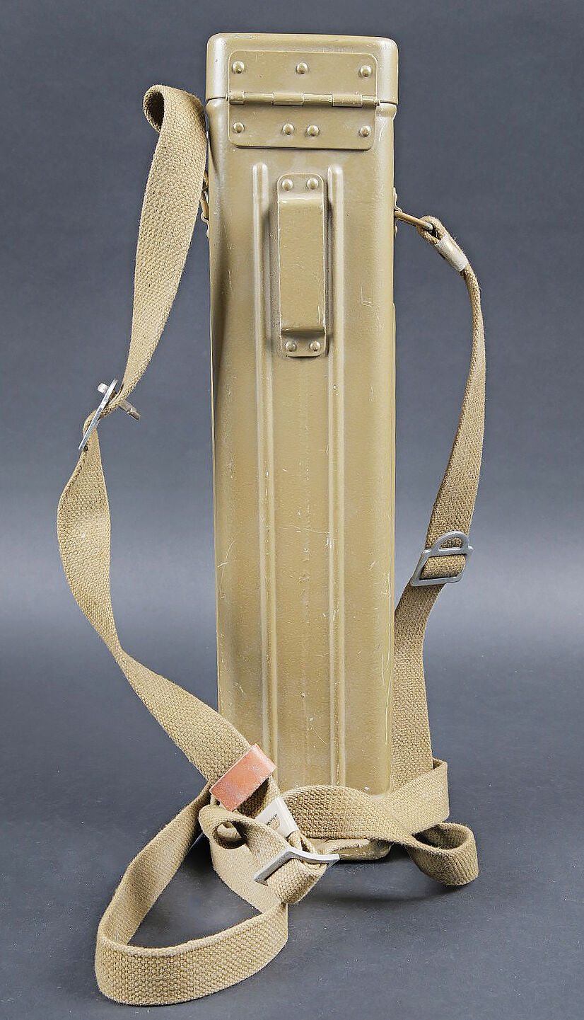 Périscope Pacte de Varsovie. Boite en métal. Attache complète. Sangle de transport présente. Numéro 4N442. Peinture à 70%. Modèle de périscope se fixant sur une optique secondaire. En métal, peinture à 90%. Numéro 4N442. Optique en parfait état. A noter une certaine usure et patine de la pièce. Etat II+. Warsaw Pact periscope Metal transport case with complete fastening system and carrying strap. Serial number 4N442. Paint 70% preserved. Periscope model designed for mounting on a secondary optic. Metal periscope with paint 90% preserved. Serial number 4N442. Optics in perfect condition. Note some wear and patina to the piece. Condition II+.