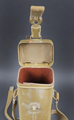 Détails de la vente >Périscope Pacte de Varsovie. Boite en métal. Attache complète. Sangle de transport présente. Numéro 4N442. Peinture à 70%. Modèle de périscope se fixant sur une optique secondaire. En... en savoir plus