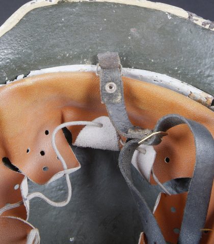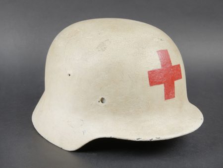 Détails de la vente >Reproduction d’un casque d’infirmier WH. Coque de casque complètement mastiquée et repeinte. Les insignes et l’intérieur sont des reproductions. A noter une certaine usure et... en savoir plus