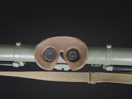 Détails de la vente >Télémètre britannique export. En métal. Complètement repeint. Les bonnettes en bakélite sont présentes, ainsi que la sangle de transport. Protège front en caoutchouc marron présentant... en savoir plus