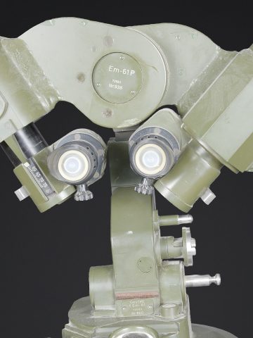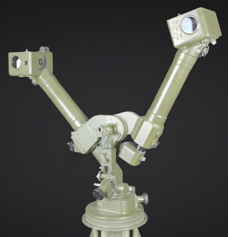 Télémètre EM-61. Premier télémètre stéréoscopique de la NVA. Système d’éclairage présent. Binoculaire en métal, support dorsal complet permettant de transporter l’optique.... en savoir plus