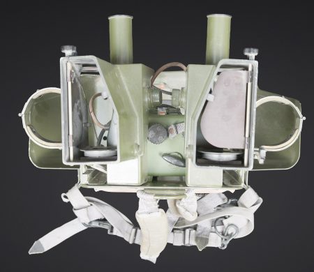 Détails de la vente >Télémètre EM-61. Premier télémètre stéréoscopique de la NVA. Système d’éclairage présent. Binoculaire en métal, support dorsal complet permettant de transporter l’optique.... en savoir plus