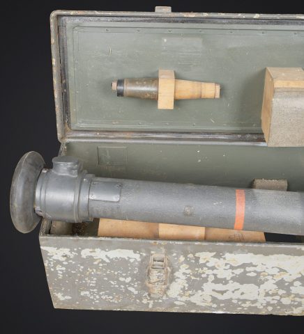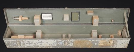 Détails de la vente >Télémètre de la marine de guerre des forces de l’axe. Modèle en caisse. Belle caisse en métal, les poignées de transport sont présentes, les crochets de fixation du couvercle sont... en savoir plus