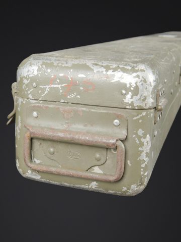 Télémètre suisse Wild. Belle caisse en métal. Peinture kaki à 70%. Les poignées de transport sont présentes. Les crochets de fermeture sont fonctionnels. Plaquette marquée Wild Heerbrugg... en savoir plus