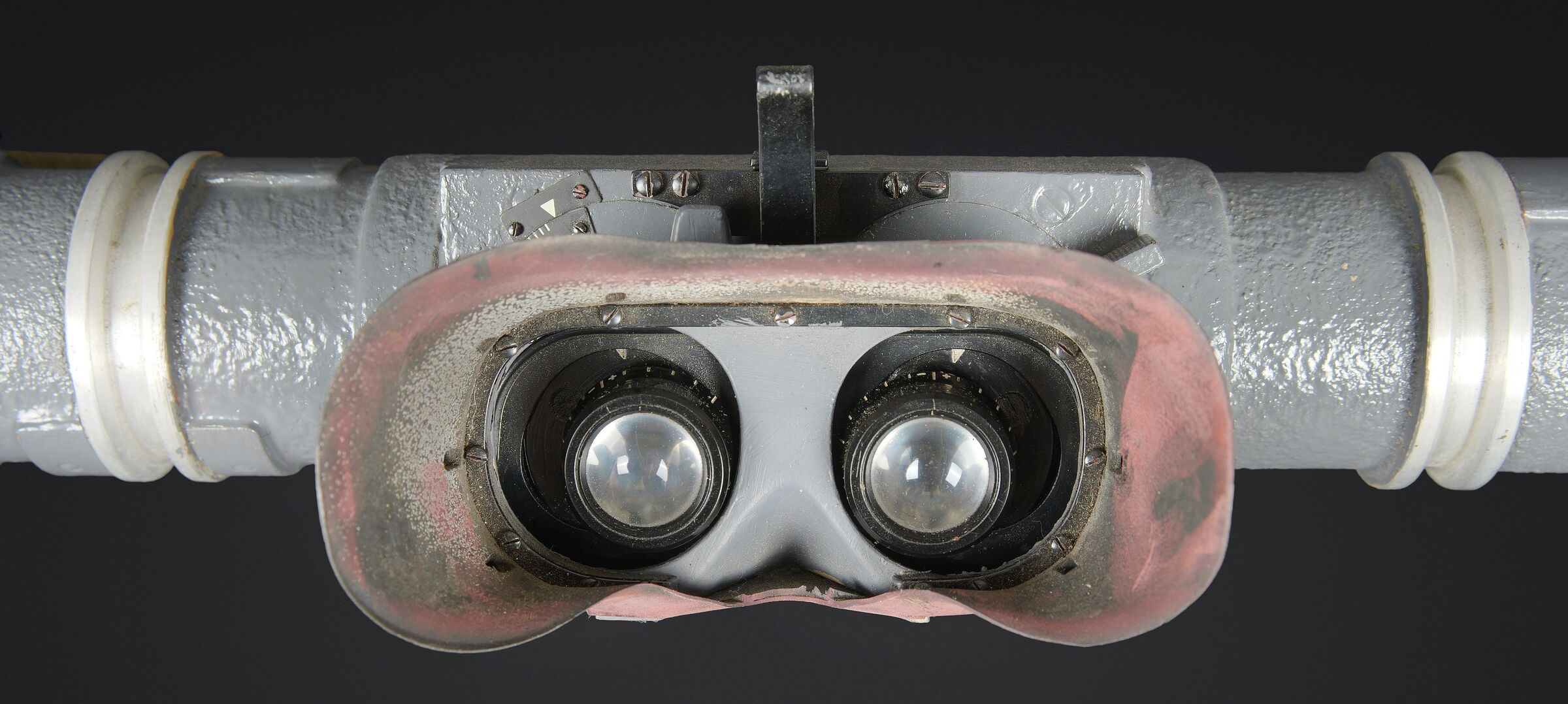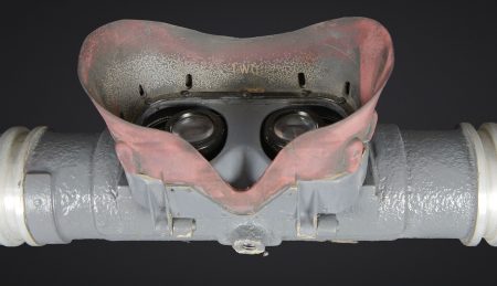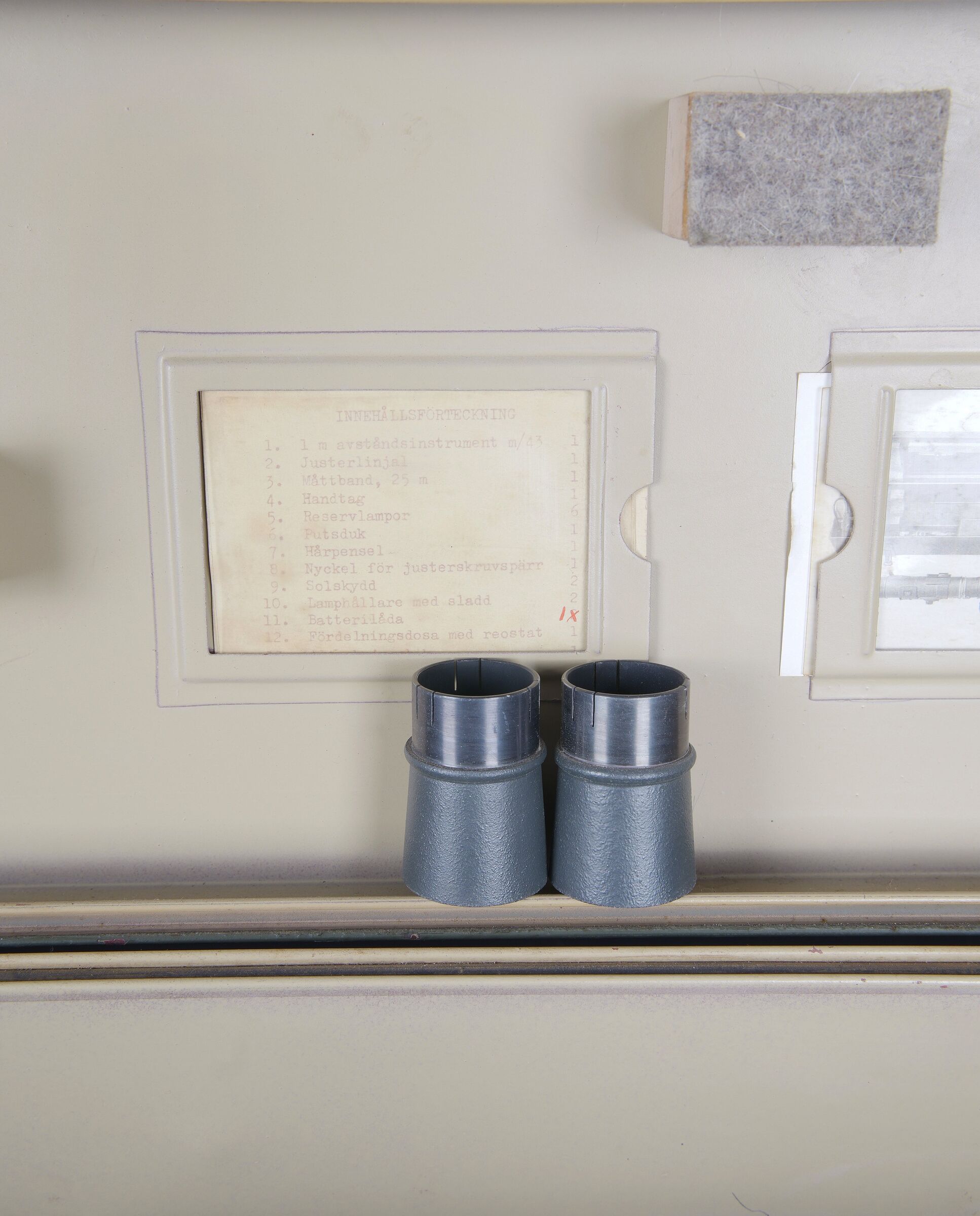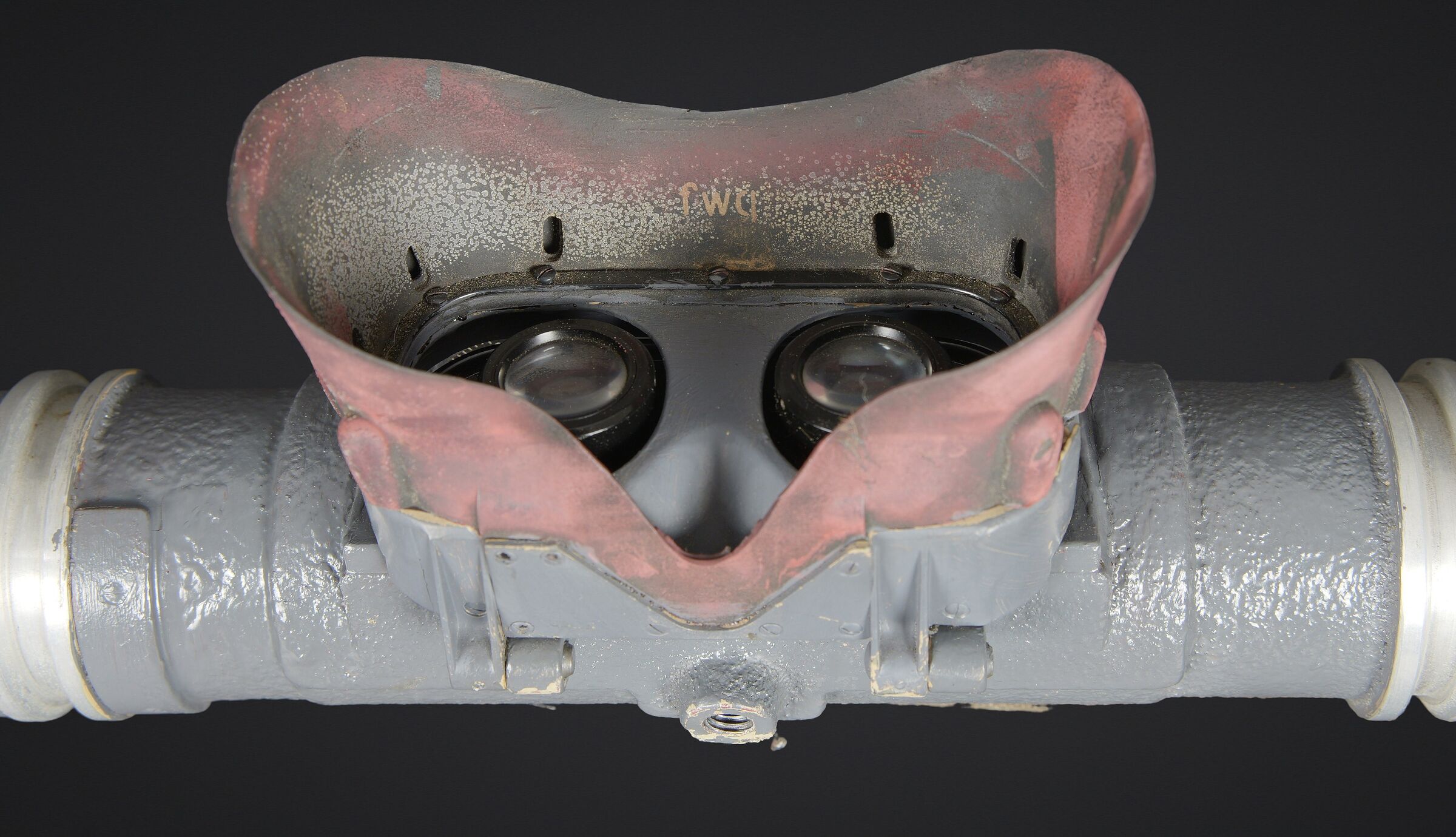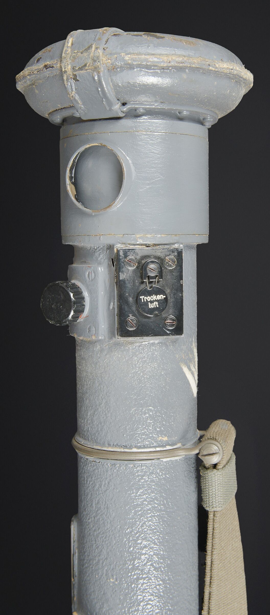 Télémètre WH en caisse; Caisse en métal, repeinte. Sans marquages visibles. Intérieur disposant de sa peinture jaune sable d’origine. Les crochets de fermeture sont complets. Les poignées de transport sont présentes. Plaque marquée 1m A Instr M/43 Steno Nr 29442. Notice d’inventaire présente. Toutes les cales en bois sont présentes et recouverte d’une feutrine. La majorité des accessoires sont manquants. Télémètre de couleur gris bleu. Fabrication FWQ nr 29271 1943. Bonnettes en cuir complètes. Règle de calcul présente dans la caisse. Appui front en caoutchouc rouge très usé et sec. Plaquette marquée 1 m A Instru M 43 6X. Optique claire avec quelques tâches. Sangle de transport en toile complète. A noter une certaine usure et patine de la pièce. Etat II+. WH rangefinder in case Repainted metal case with no visible external markings. Interior retaining its original sand-yellow paint. Closing hooks complete. Carrying handles present. Plate marked 1 m A Instr M/43 Steno Nr 29442. Inventory sheet present. All wooden internal supports present and felt-lined. Majority of accessories missing. Rangefinder in grey-blue finish. Manufactured by fwq Nr 29271 dated 1943. Complete leather eyepiece covers. Calculating slide rule present inside the case. Red rubber forehead rest very worn and hardened. Plate marked 1 m A Instru M 43 6×. Clear optics with some spotting. Complete canvas carrying strap. Note some wear and patina to the piece. Condition II+.