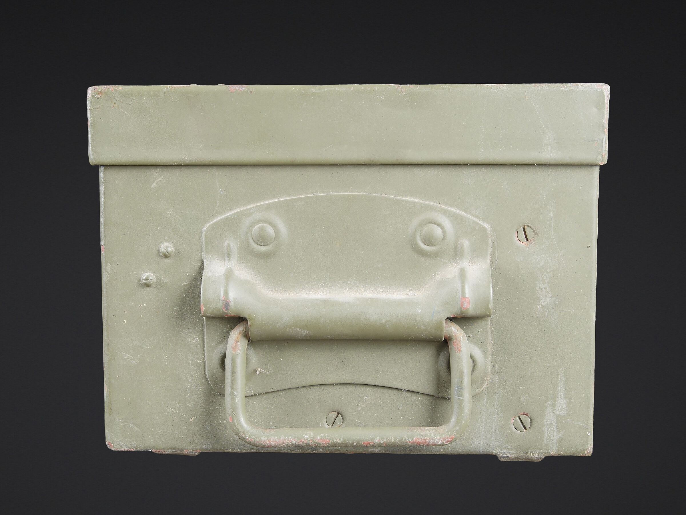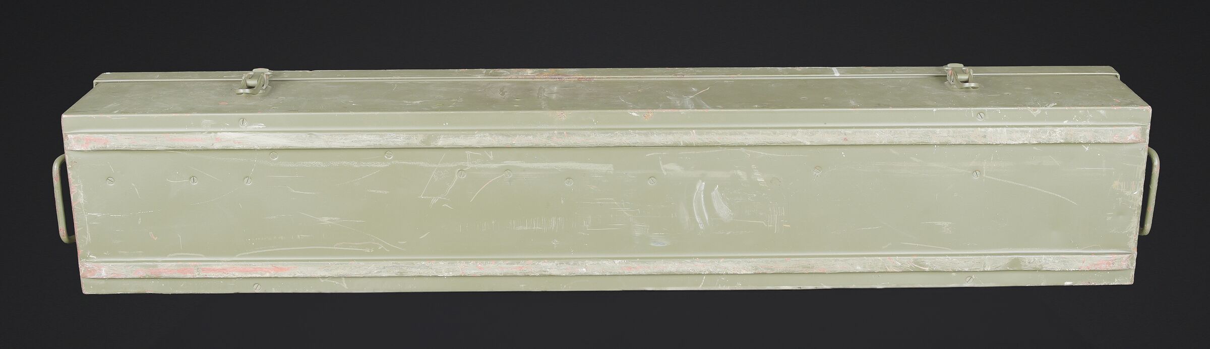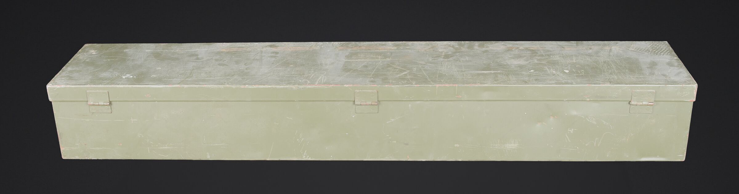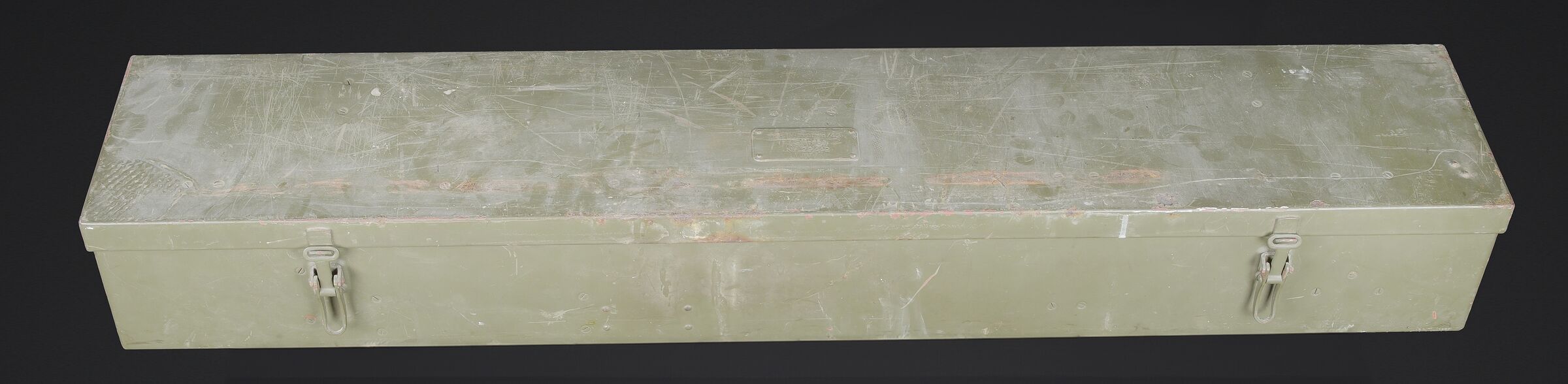 Télémètre WH en caisse; Caisse en métal, repeinte. Sans marquages visibles. Intérieur disposant de sa peinture jaune sable d’origine. Les crochets de fermeture sont complets. Les... en savoir plus