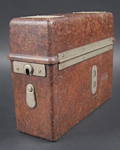 Téléphone de campagne WH. En bakélite marron. Les plaquettes sont présentes sur le couvercle. Manivelle complète, ainsi que le combiné. Câble et prise en bon état. Fabrication de 1940,... en savoir plus