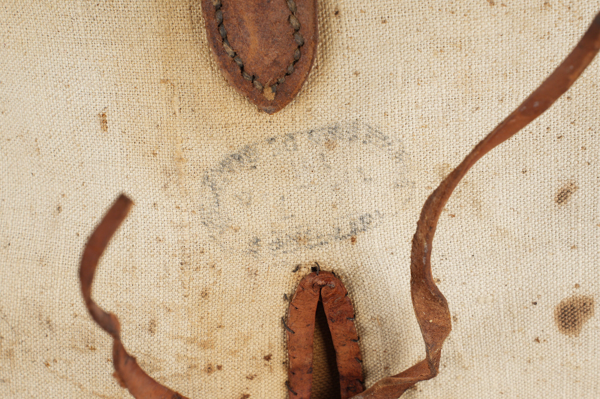 As de carreau noirci 1893. En toile kaki claire noircie, cuir fragilisé et cadre postérieur. Bretelles d’origine ainsi que trois courroies de paquetage, un passant décousu. Une couverture... en savoir plus