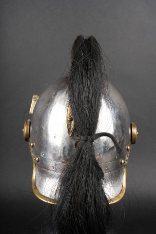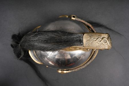 Casque 1910 troupe de chasseurs à cheval. Casque identique au modèle 1874 mais de dimensions plus petites. Bombe en acier nickelé en taille 57 comme l’indique le marquage au dos et... en savoir plus