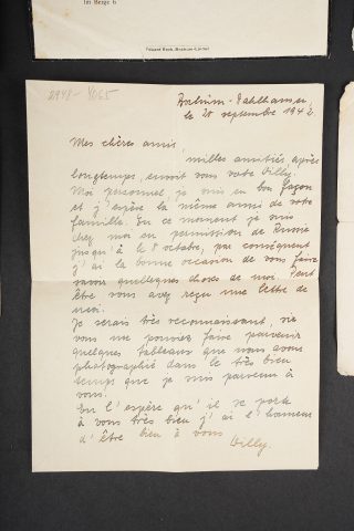 Correspondance entre un Soldat Allemand et une Française. Bel ensemble de document comprenant une lettre envoyée en septembre 1942 par le soldat Allemand Willi Sahm , rédigée en Français et... en savoir plus