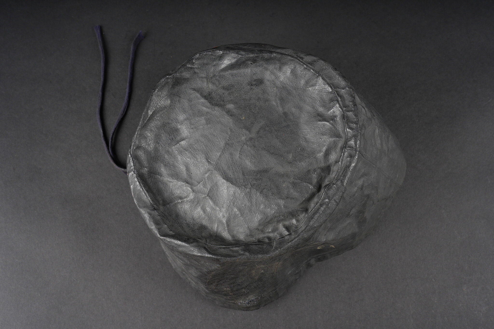 Détails de la vente >Couvre képi 1873. En toile cirée noire, deux boutonnière et un cordon de serrage en coton gris de fer bleuté. Hauteur à l’arrière 13cm. Kepi cover Model 1873 in black oilcloth, with... en savoir plus
