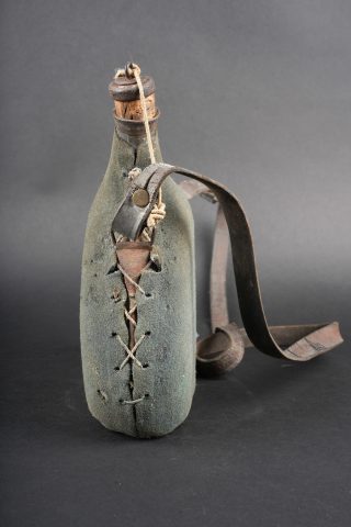 Détails de la vente >Ensemble d’équipements. Comprenant un bidon 1877 peint en bleu horizon et recouvert d’une housse teintée en bleu, un bouchon non conforme, courroie de transport d’origine. Une... en savoir plus