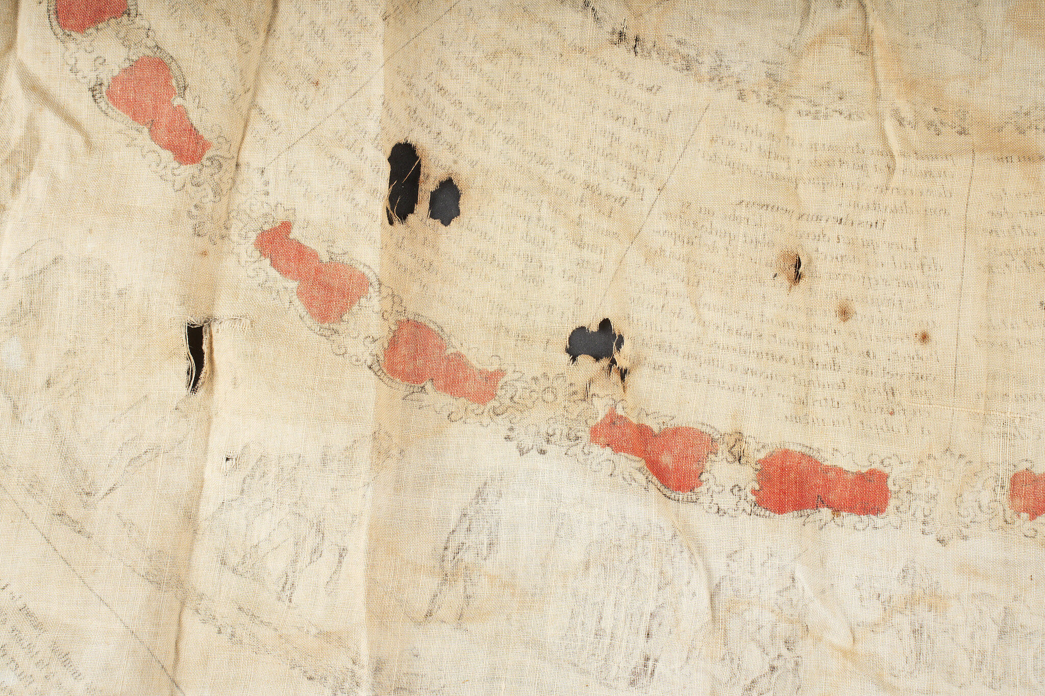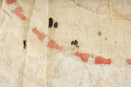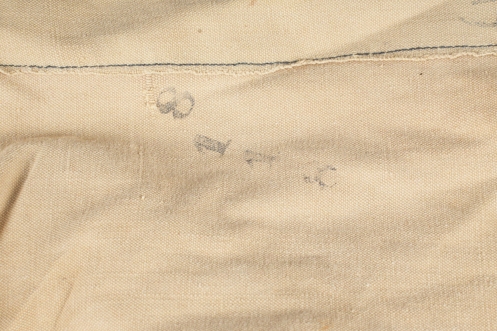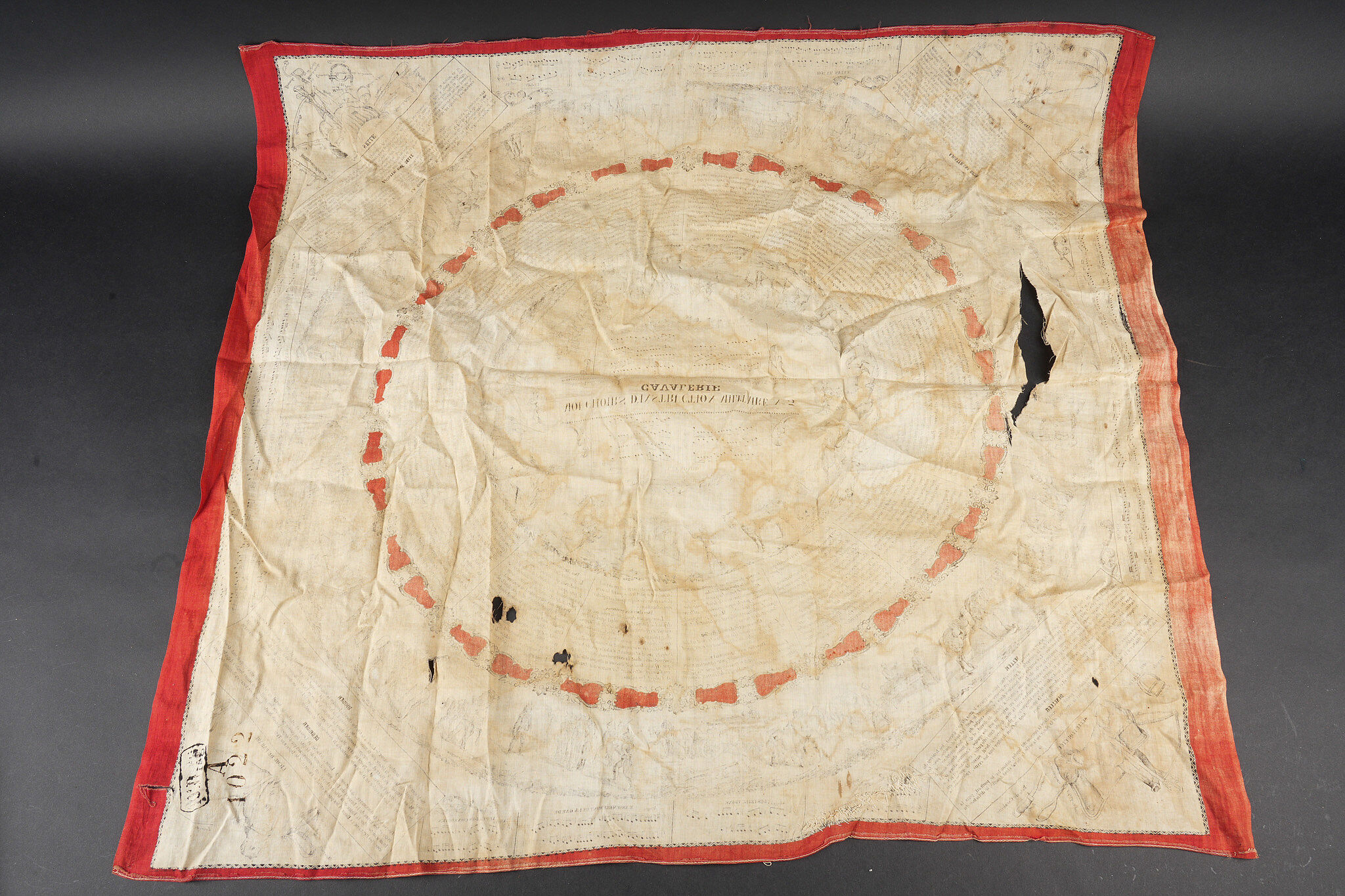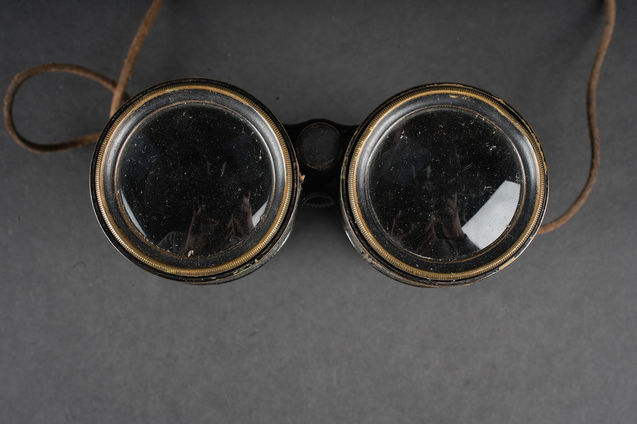 Equipements de cavalerie. Comprenant un ceinturon modèle 1884 troupe en cuir fauve, bélière de sabre en cuir fauve ainsi qu’une grande sangle en cuir rivetée postérieurement et sans lien avec le ceinturon. Traces de colle à l’intérieur du ceinturon. Un mouchoir d’instruction de cavalerie présentant de nombreux accrocs. Une paire de jumelles d’officier d’achat privé. Une musette 1892 en toile kaki claire avec un tampon postérieure. Cavalry equipment set. Comprising a model 1884 other ranks belt in fawn leather, a fawn leather sword hanger and a large riveted leather strap added later and unrelated to the belt. Traces of glue inside the belt. A cavalry instruction handkerchief with numerous damages. A pair of privately purchased officer’s field glasses. A model 1892 haversack in light khaki canvas with later stamp.