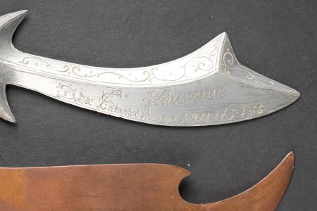 Détails de la vente >Lot artisanat de tranchées coupes papier. Comprenant 10 coupes papier dont certains gravés et portant les mentions Tranchées D’Autrèche, Léon 1917, Souvenir 1917, un TOA après guerre,... en savoir plus