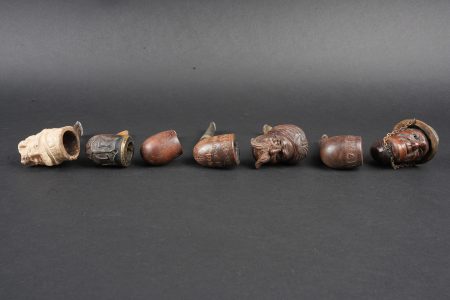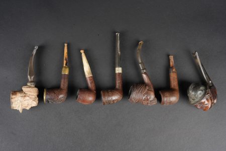Détails de la vente >Lot artisanat de tranchées pipes. Comprenant sept pipes gravées dont une 1914-1915, une campagne 1914-1915-1916 et une croix de guerre, une 1914, une campagne d’Alsace 1914, une en terre... en savoir plus