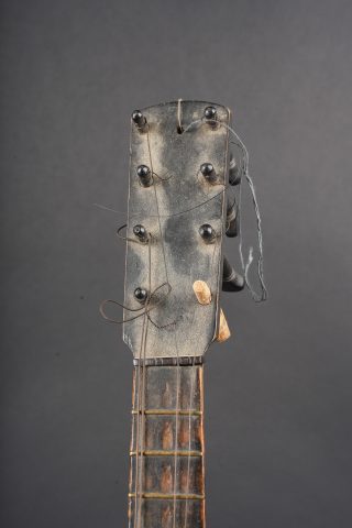 Détails de la vente >Mandoline de poilu. Réalisée de façon artisanale en bois, la caisse est fendue et gravée Campagne d’Orient Salonique 1916. Six têtes dont une non d’origine, cordes... en savoir plus