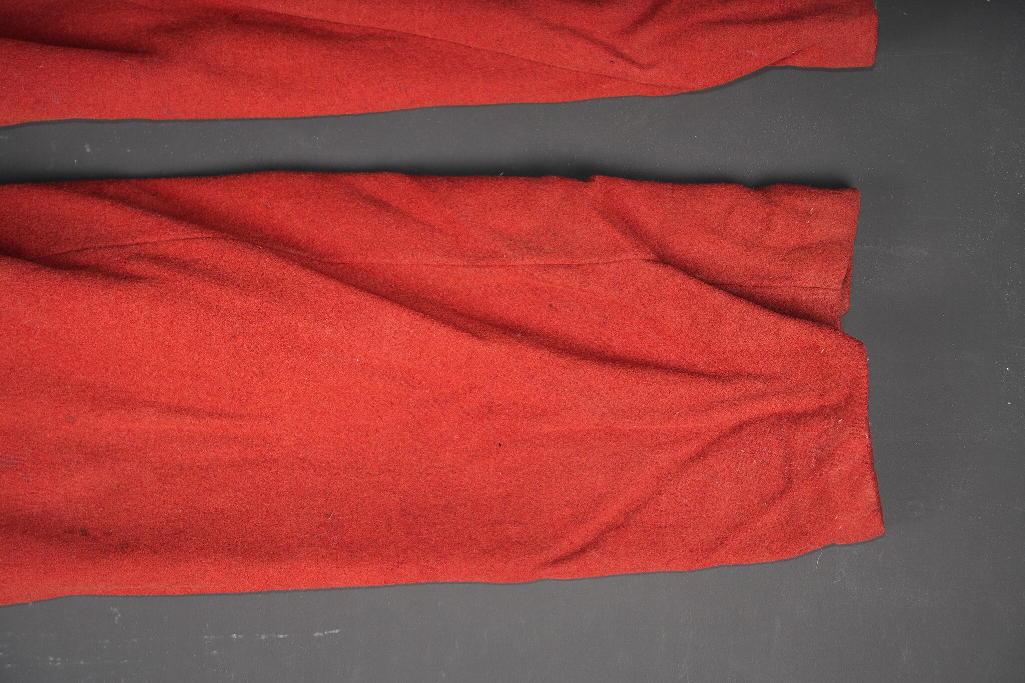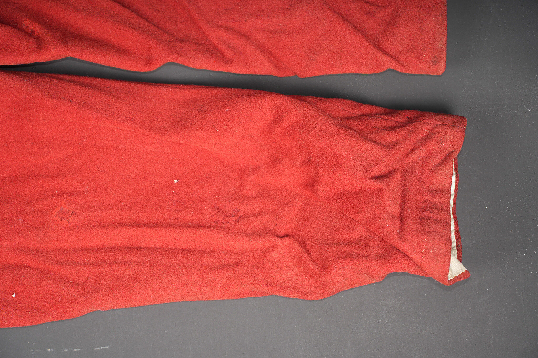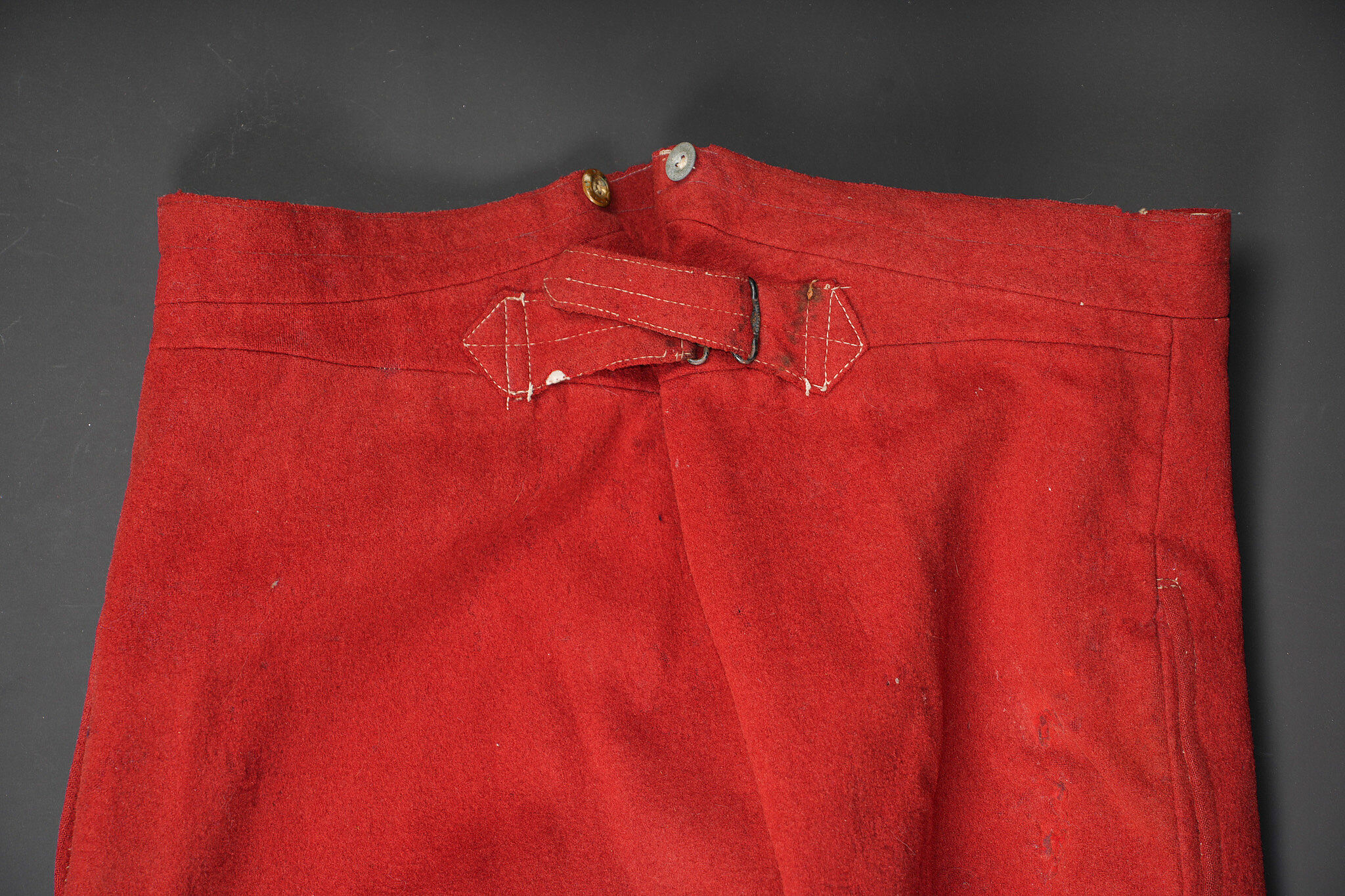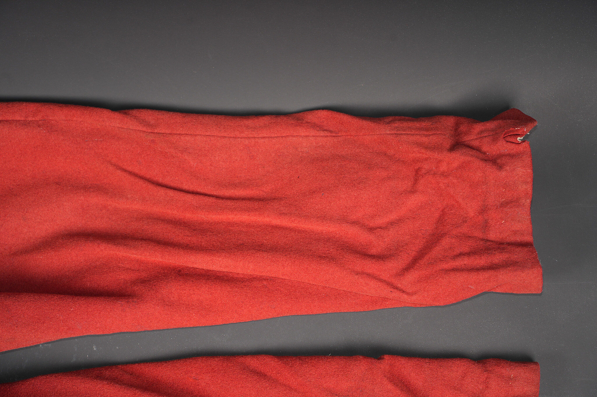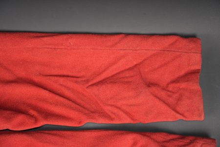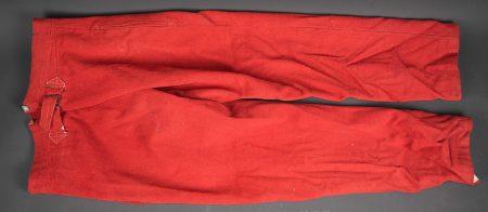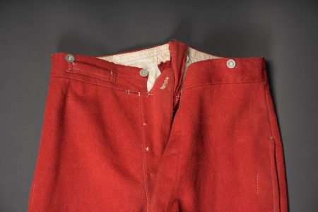 Pantalon 1867 troupe. En drap garance possédant encore ses pattes à l’intérieur des poches, martingale présente. Se fermant par cinq boutons dont un seul est présent. Doublure en coton... en savoir plus